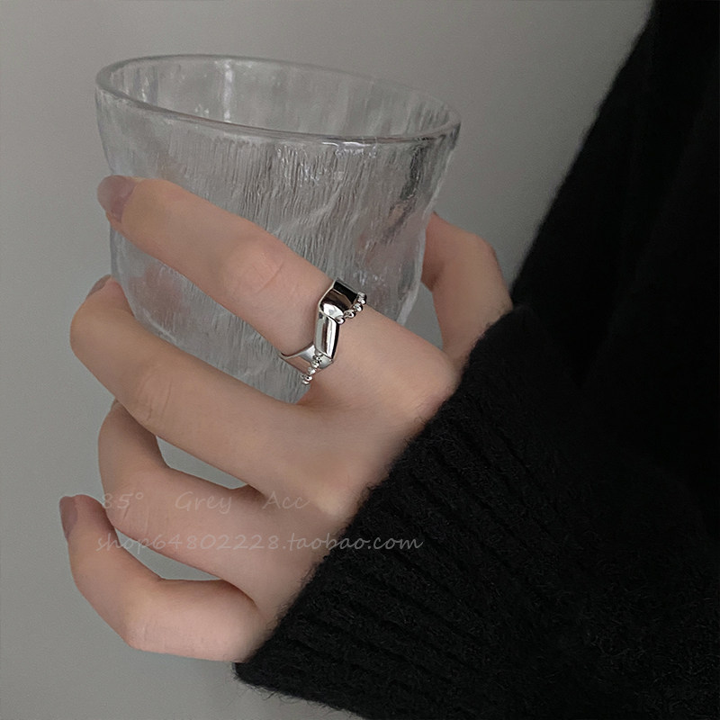 小众设计圆球链条几何扭片戒指女时尚个性开口指环2025新款食指戒