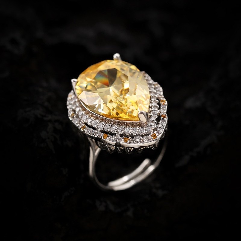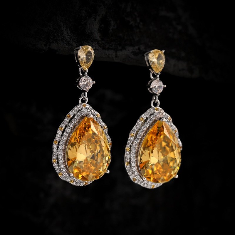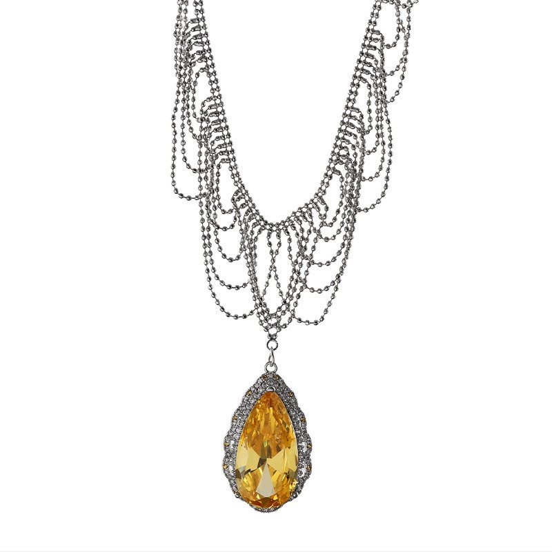 黄色水晶高级感流苏项链戒指耳环三件套装轻奢时尚气质耳坠指环
