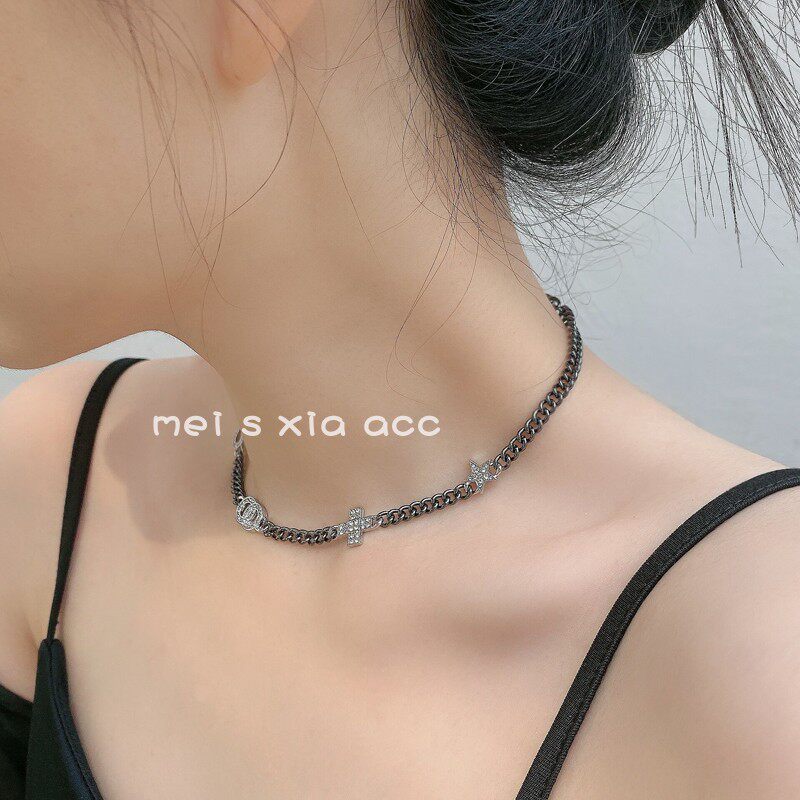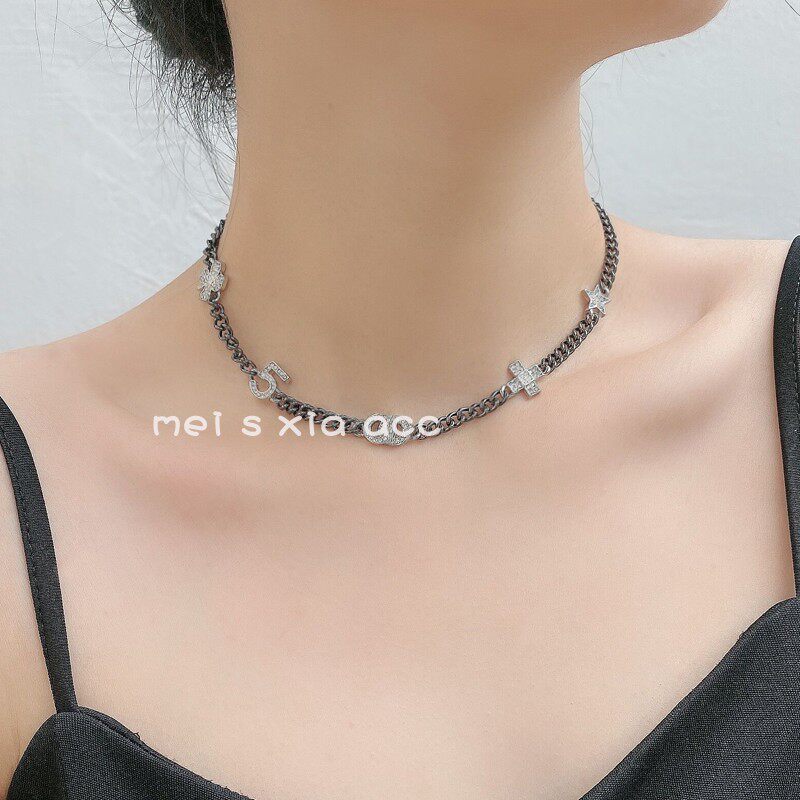 复古金属链条项链夏季字母镶钻黑色短款字母颈链女时髦特别choker