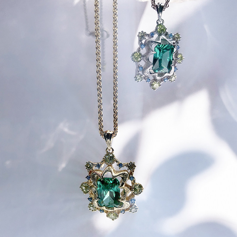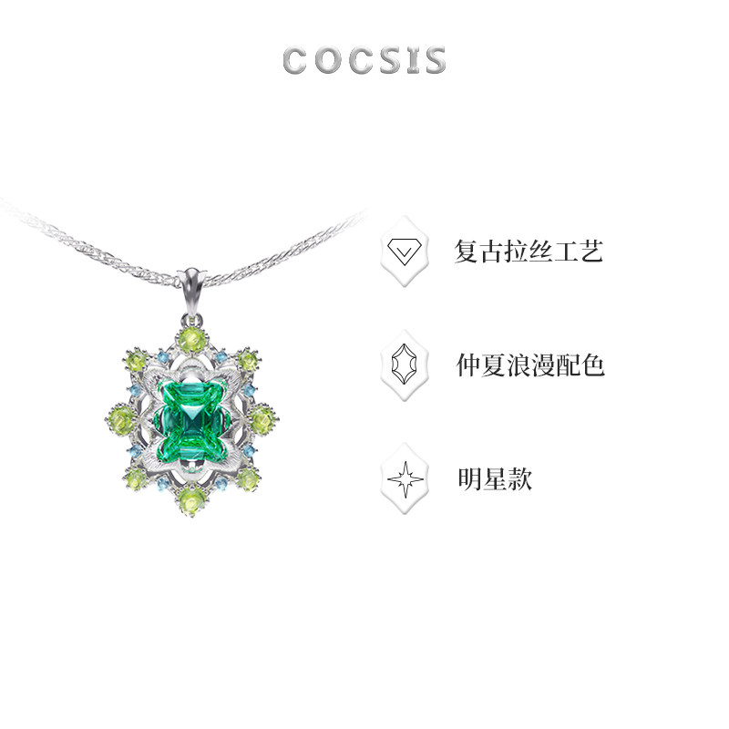 [明星款]COCSIS复古假日窗蓝绿宝石璀璨锁骨项链气质百搭蛇骨链