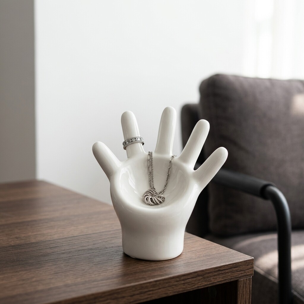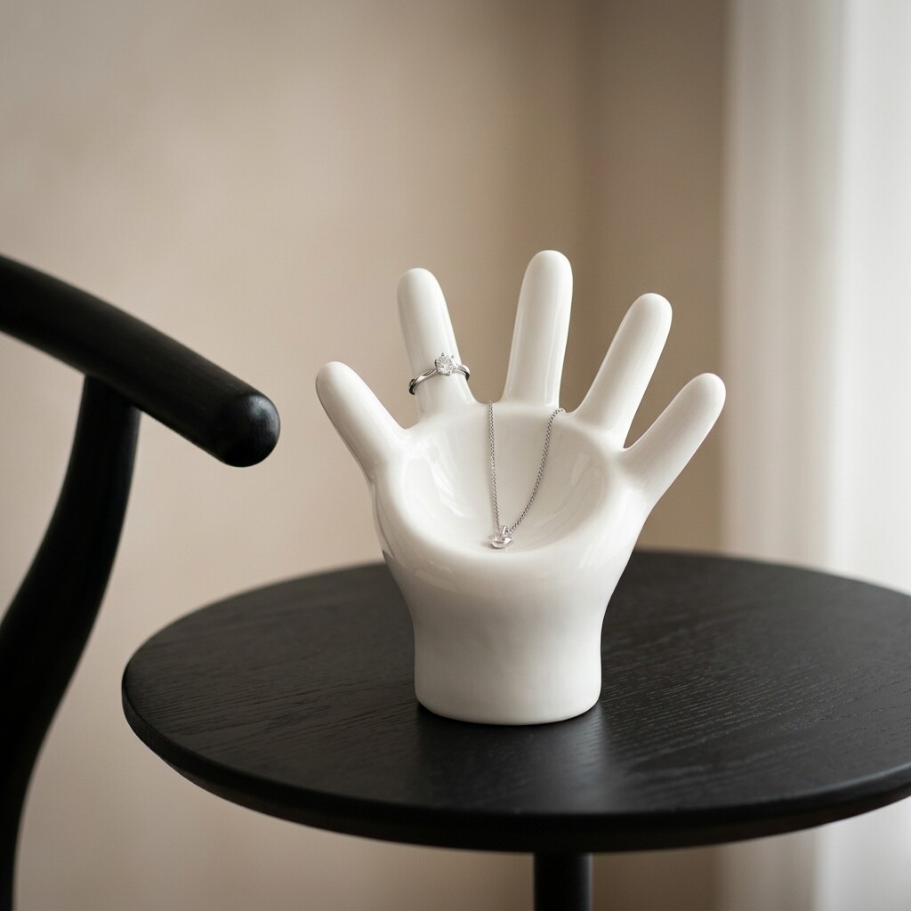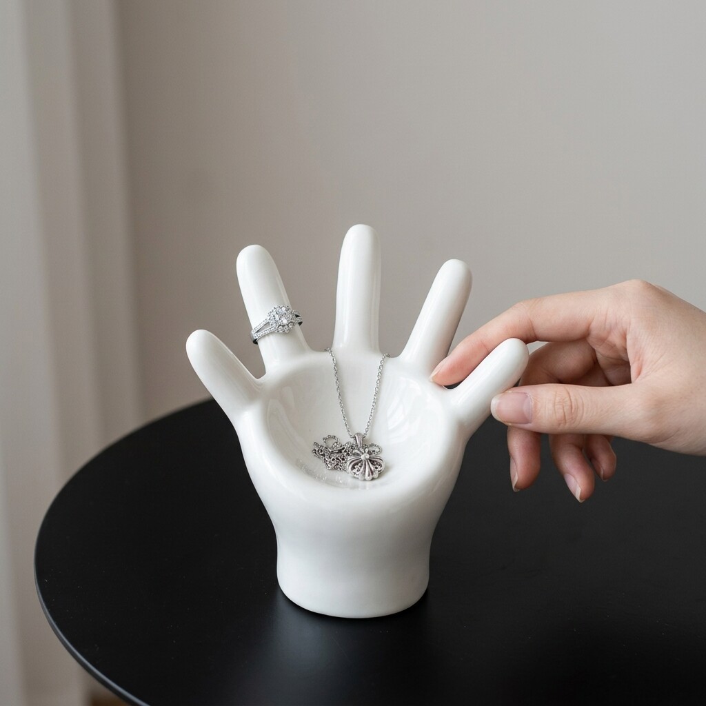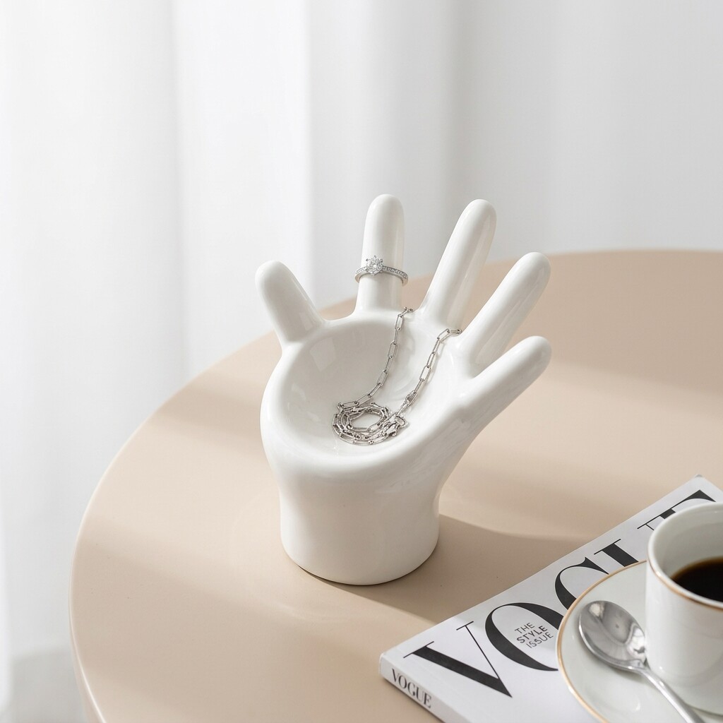 创意手形陶瓷收纳摆件白色手掌造型首饰收纳盒家居装饰品