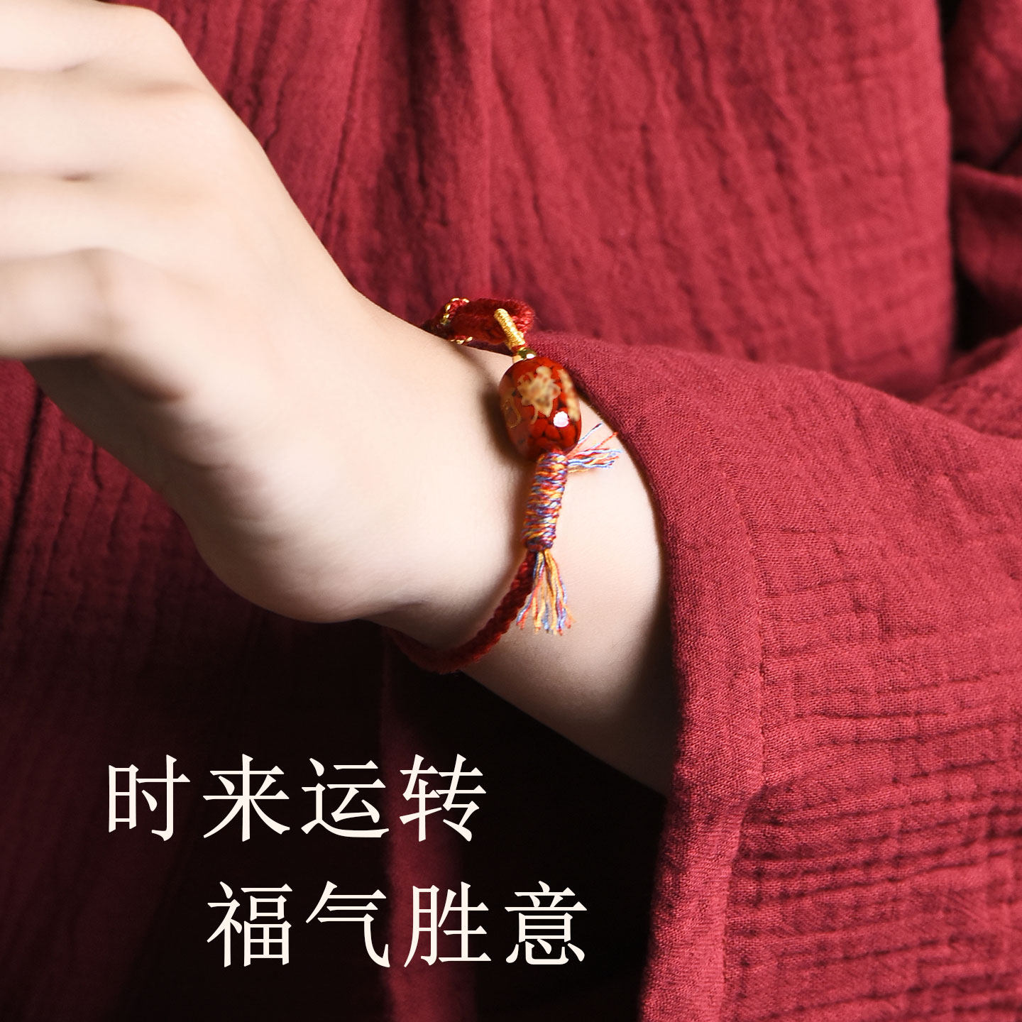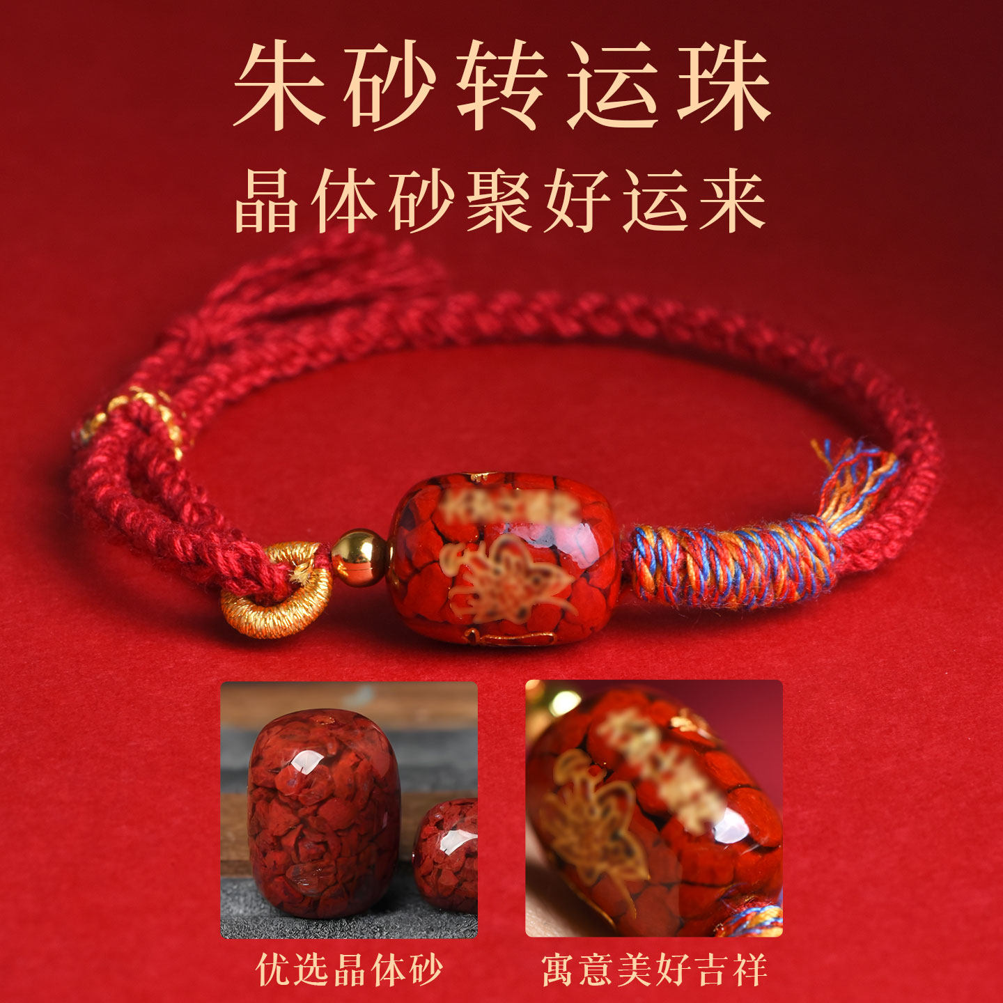2026马年红绳手链本命年朱砂太岁手绳晶体砂编织绳红色男女款手串