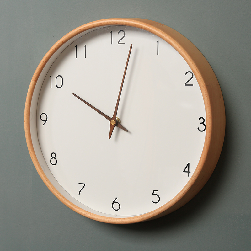 榉木实木钟表原木挂钟现代客厅卧室静音极简时钟挂墙创意壁钟摆件