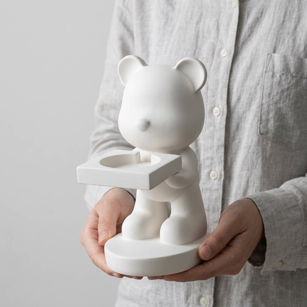 可爱小熊造型装饰摆件白色树脂桌面收纳盒法式温柔风家居饰品