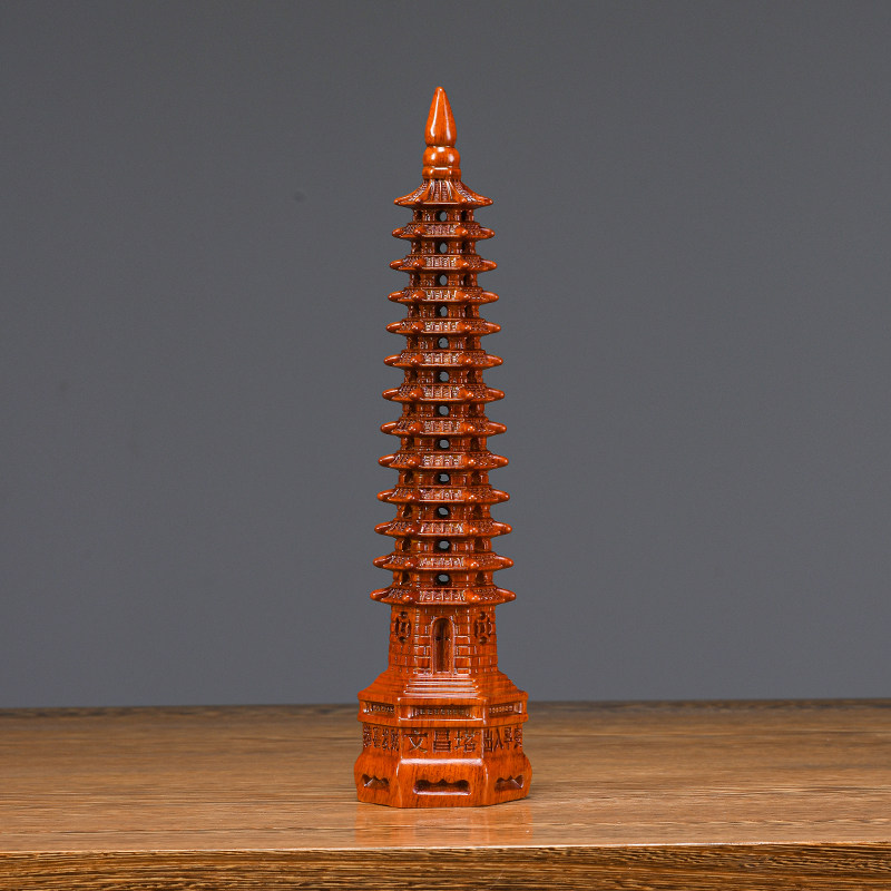 绿色木雕13层文昌塔摆件实木质十三层文昌塔花梨木家居办公室工艺