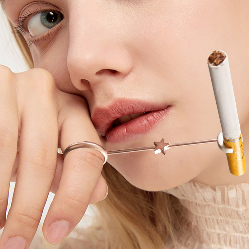 女士优雅仙女星月权杖戒指烟托抽烟指环防手指熏黄创意女神烟具