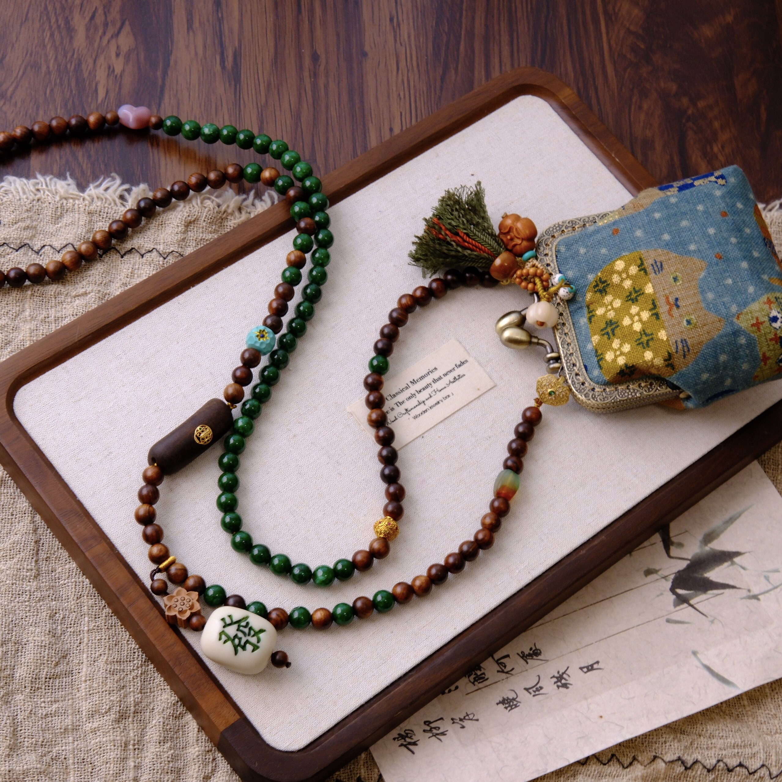 原创长款檀木斜挎多用毛衣链菩提念珠新中式多宝零钱包斜挎包
