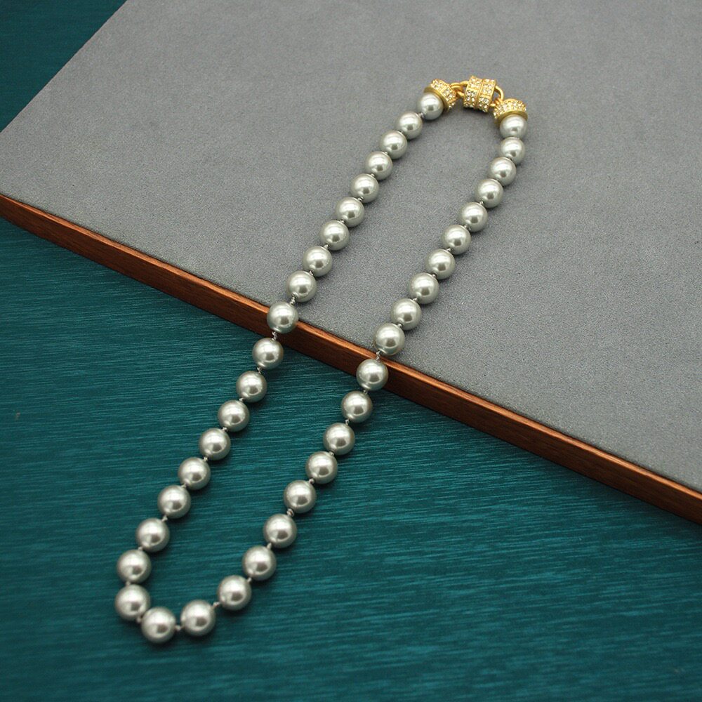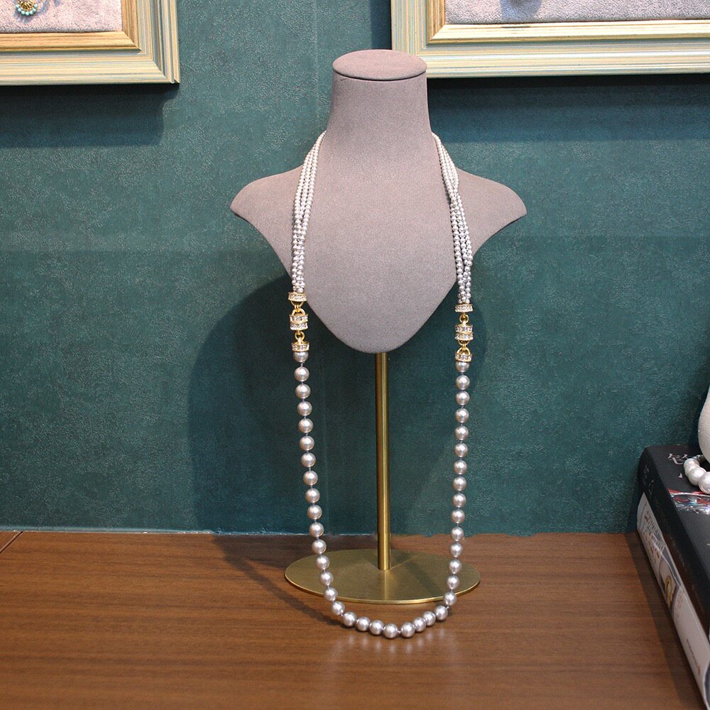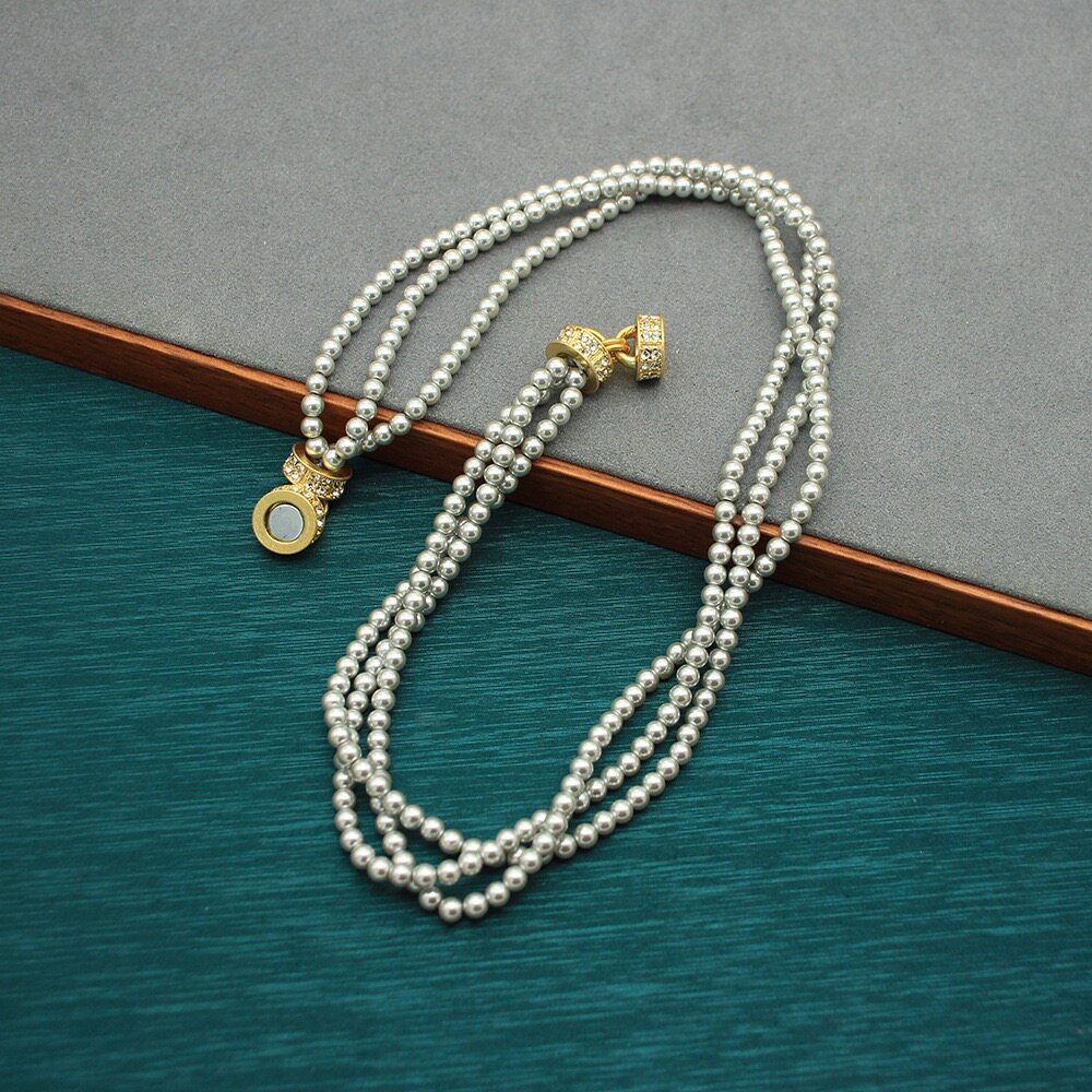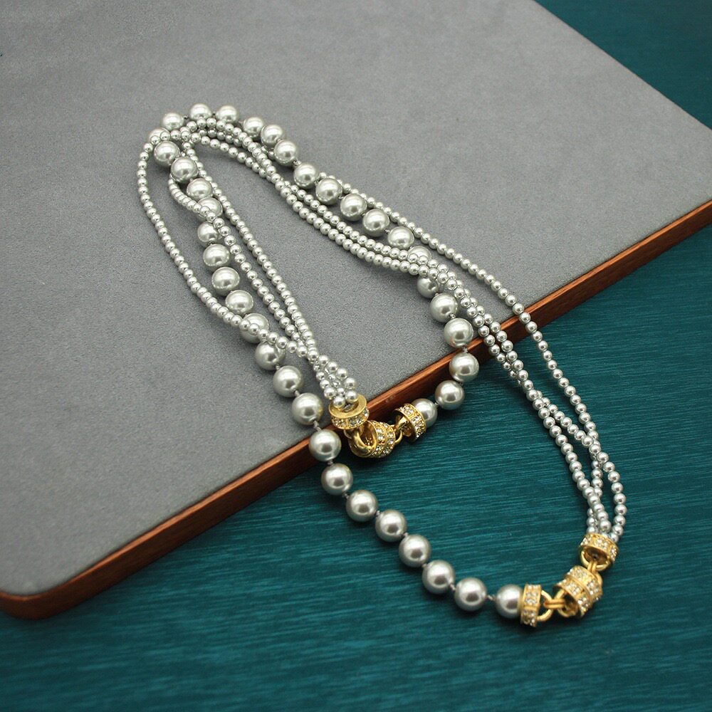跨境爆款多层珍珠项链可拆卸两戴款灰色真多麻琉璃珍珠项链手工串