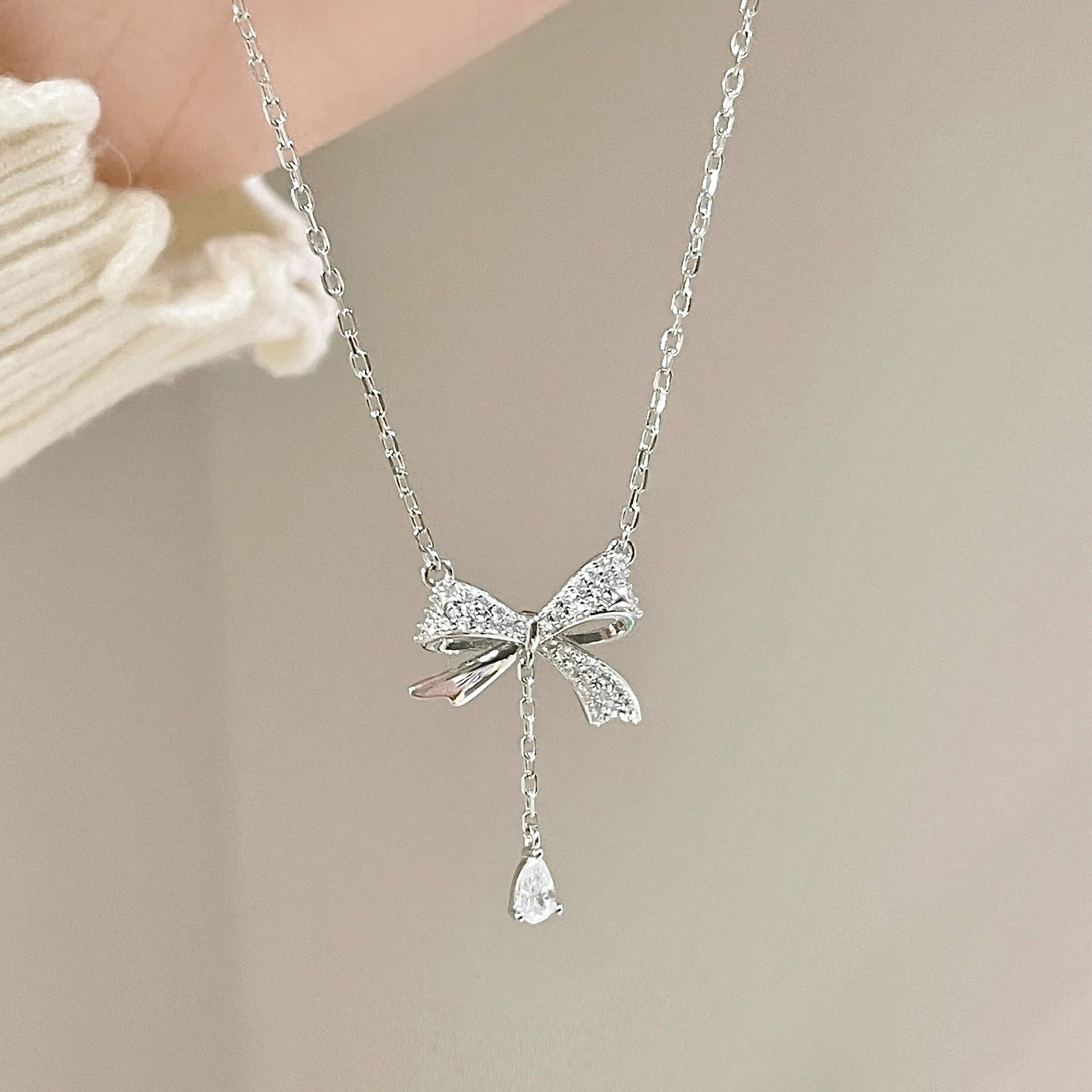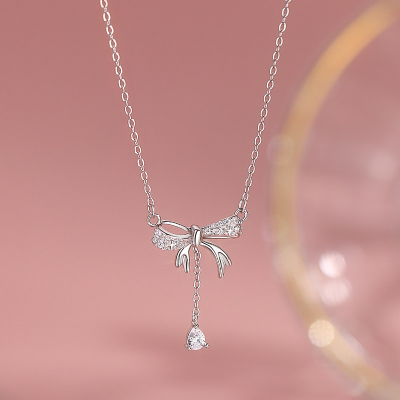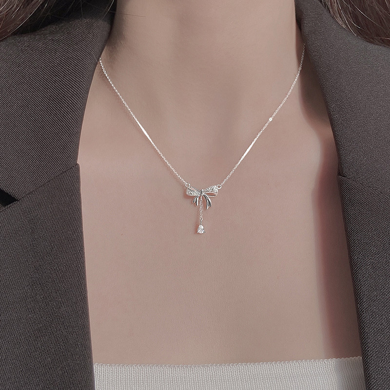 微镶蝴蝶结水滴吊坠项链女高级感流苏锁骨链2025新款爆款百搭颈链