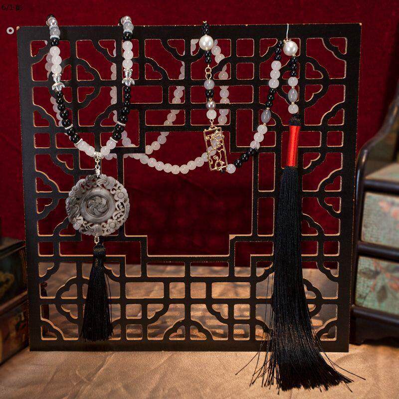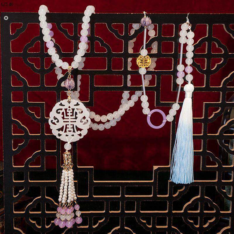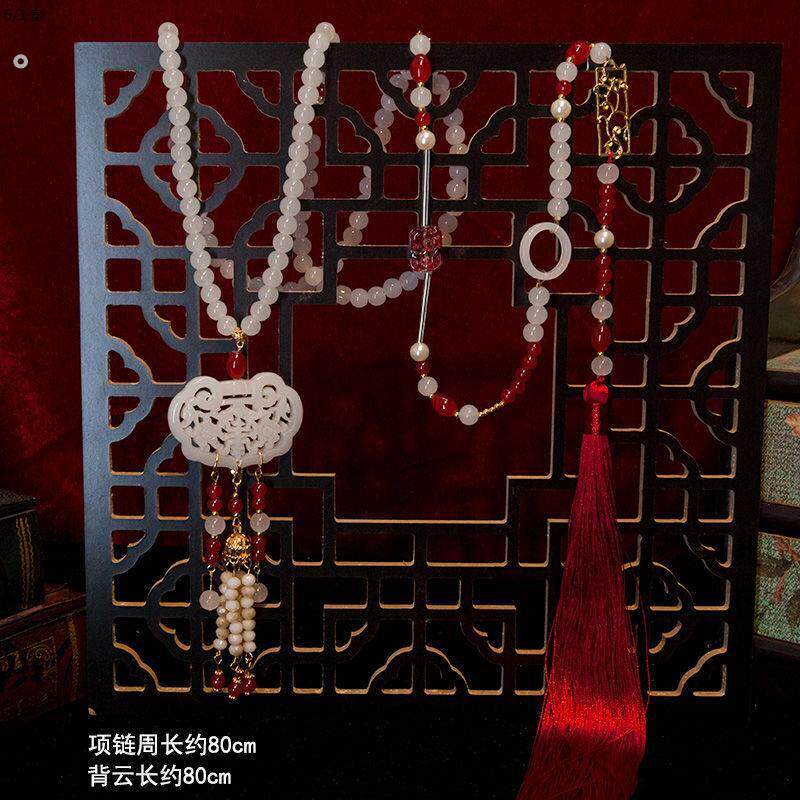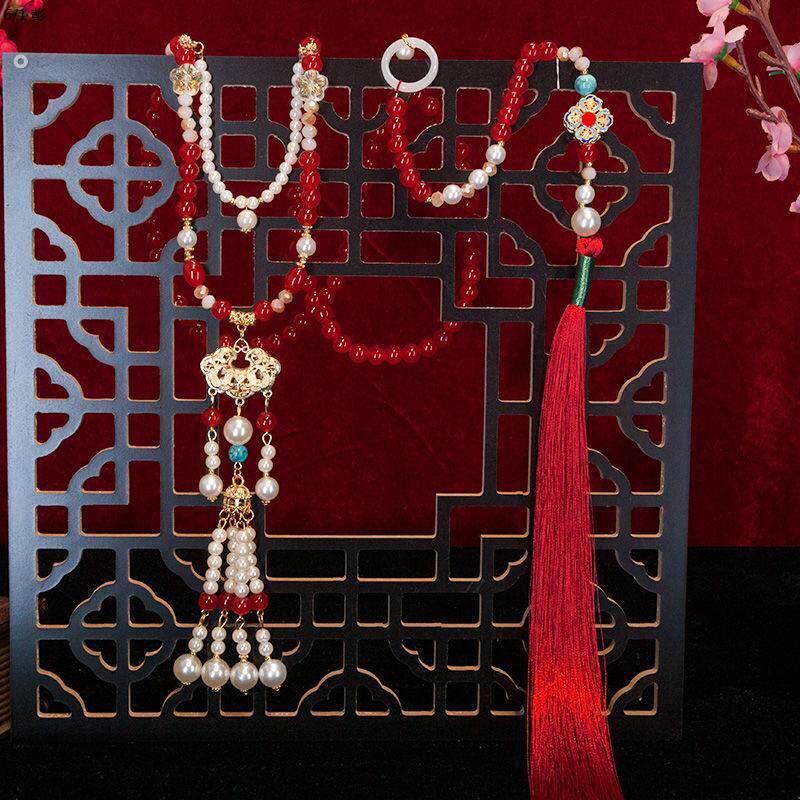 汉服马面裙红色配饰项链背云长璎珞背云流苏超长中式古风压襟明制