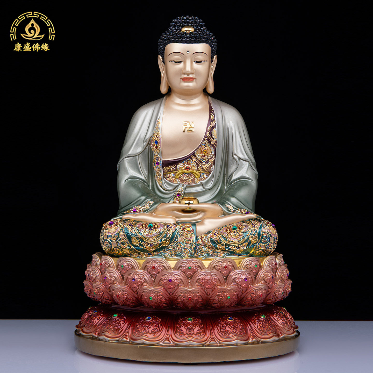 释迦牟尼观音菩萨黄铜珐琅镶宝全堂佛像地藏王弥勒佛供奉佛堂摆件