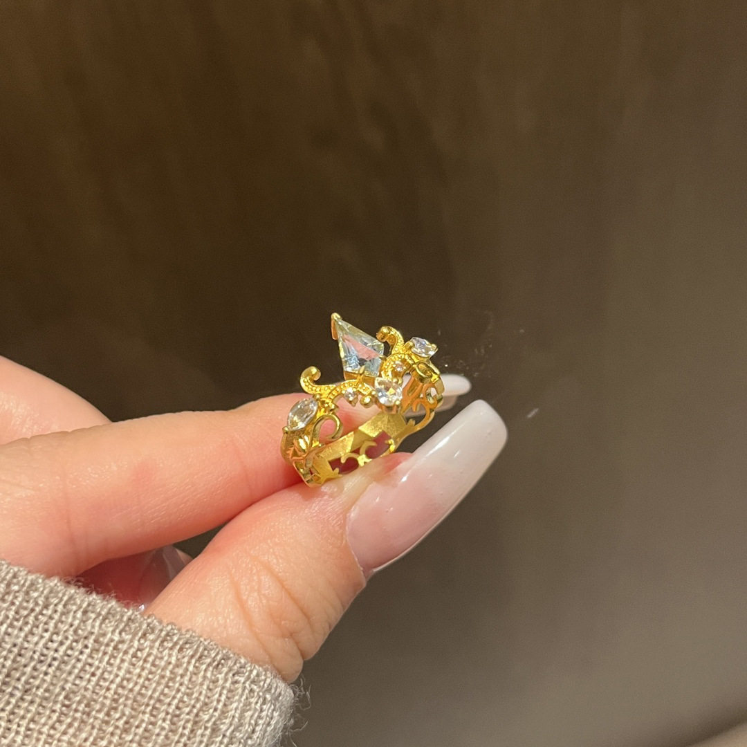 蓝眼泪戒指中古蓝色辛德瑞拉戒指复古宫廷风开口食指