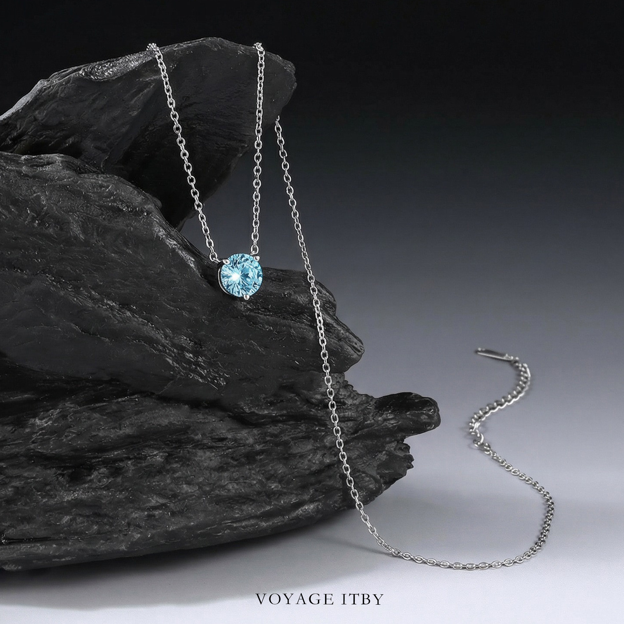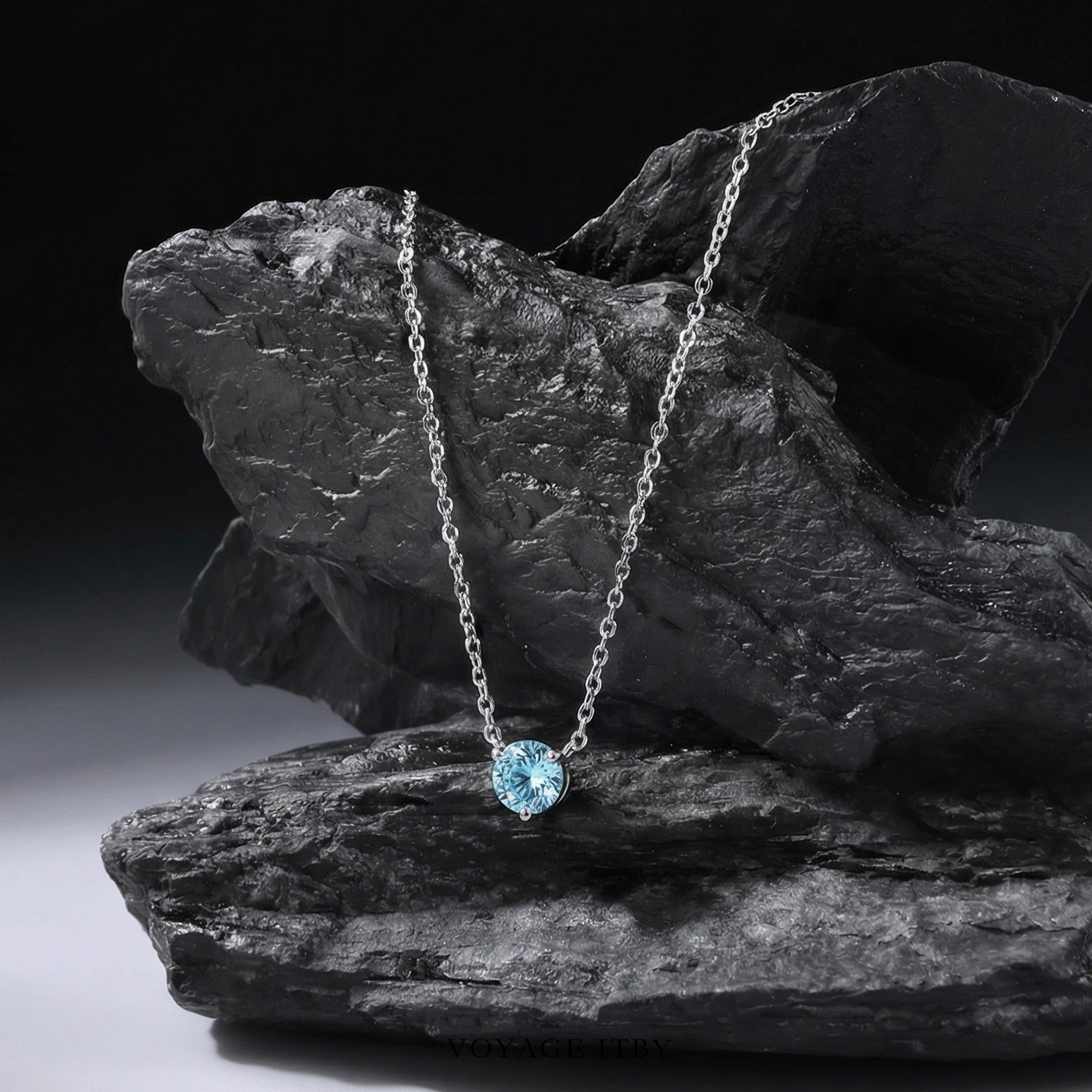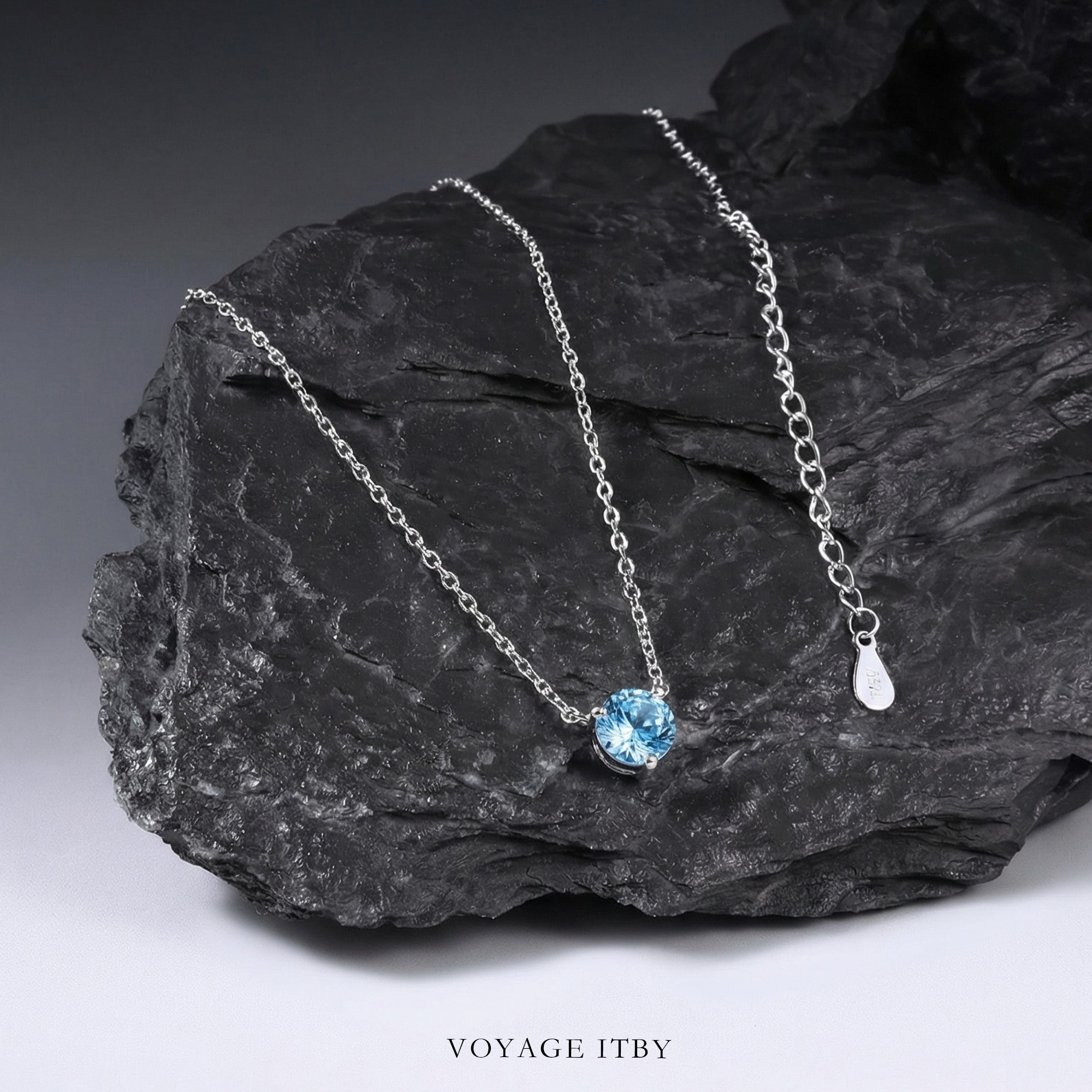 海蓝色烟花切项链女锆石吊坠锁骨链高级感颈链小众毛衣链海边配饰