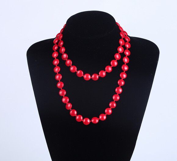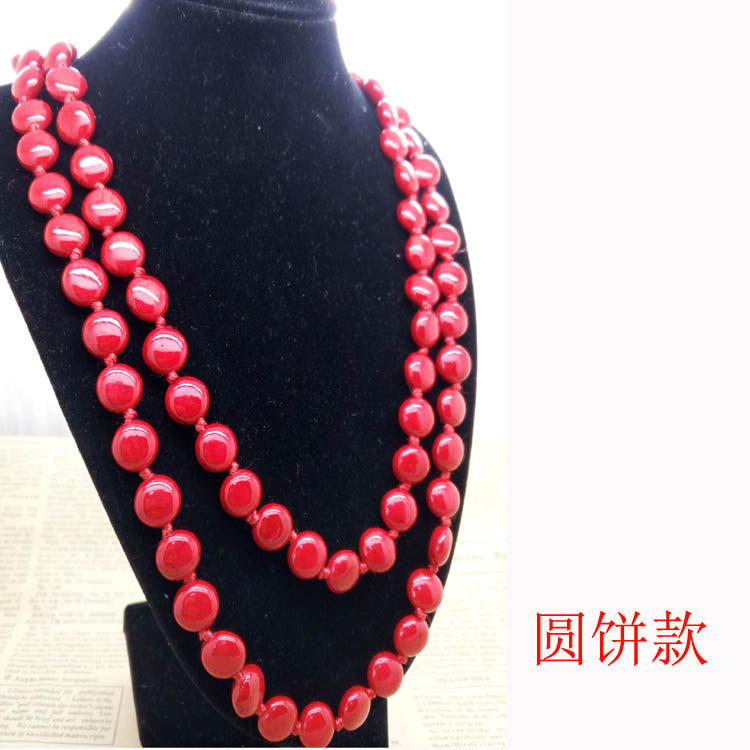 高档挂绳项链绳批红松石毛衣链红色圆饼款1.2米双层男女配饰原创