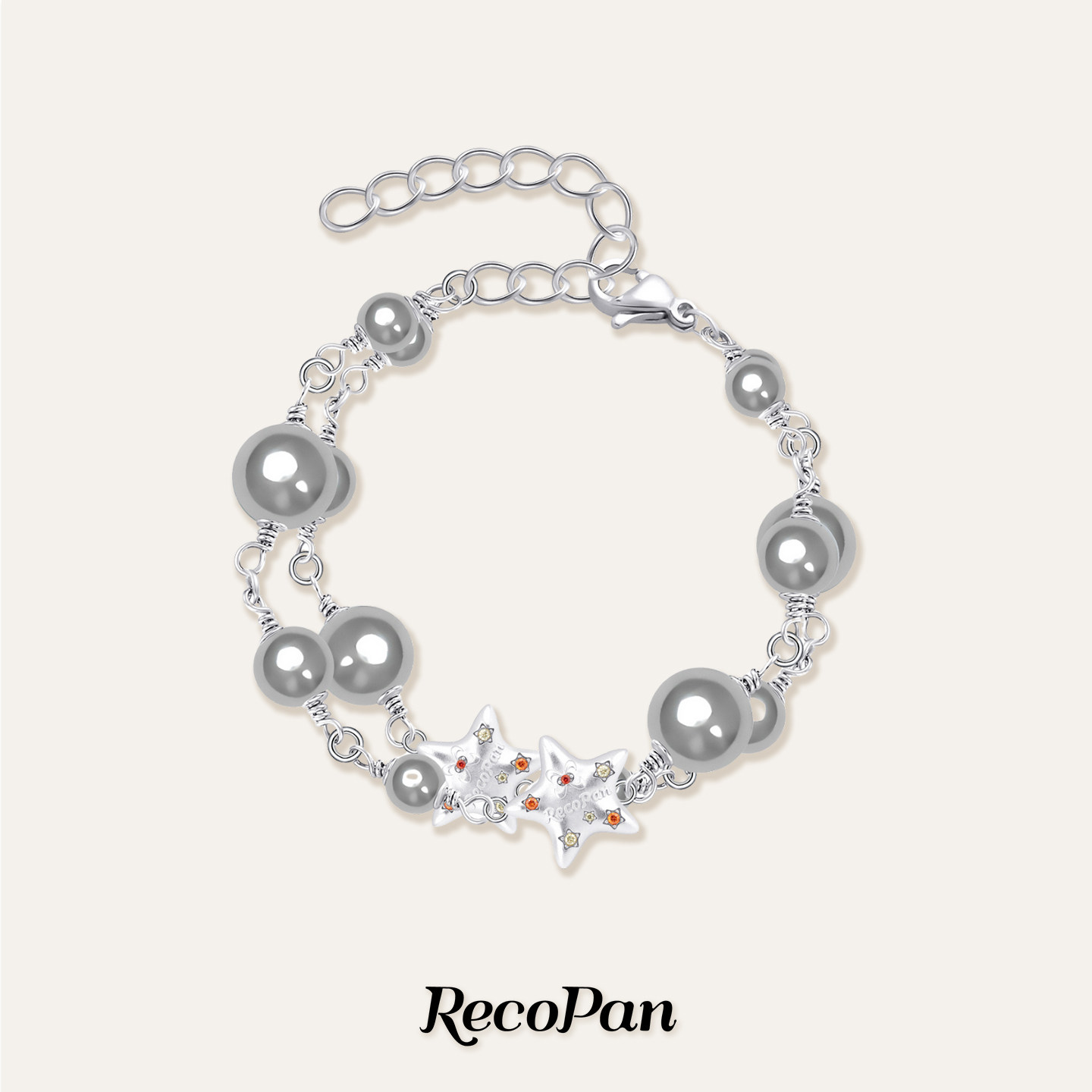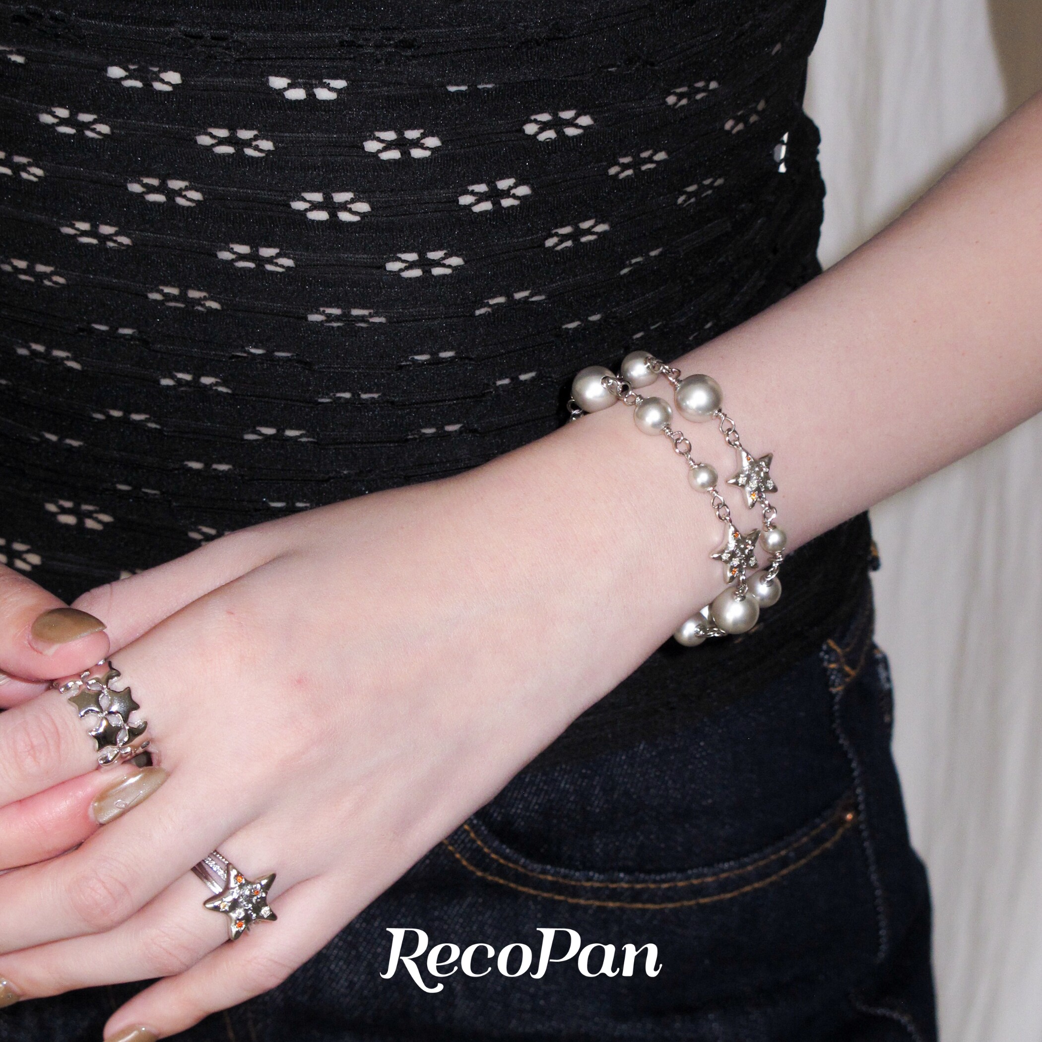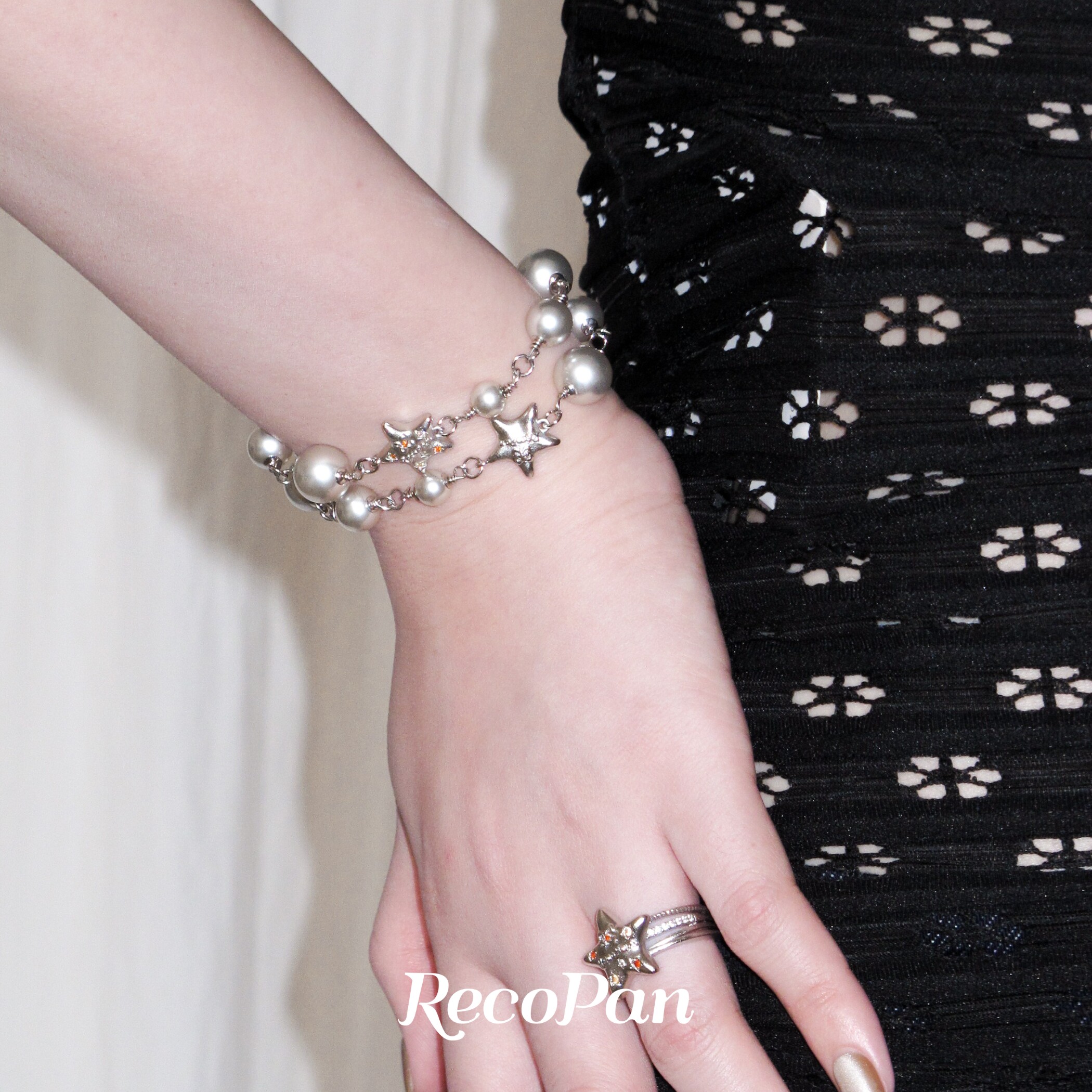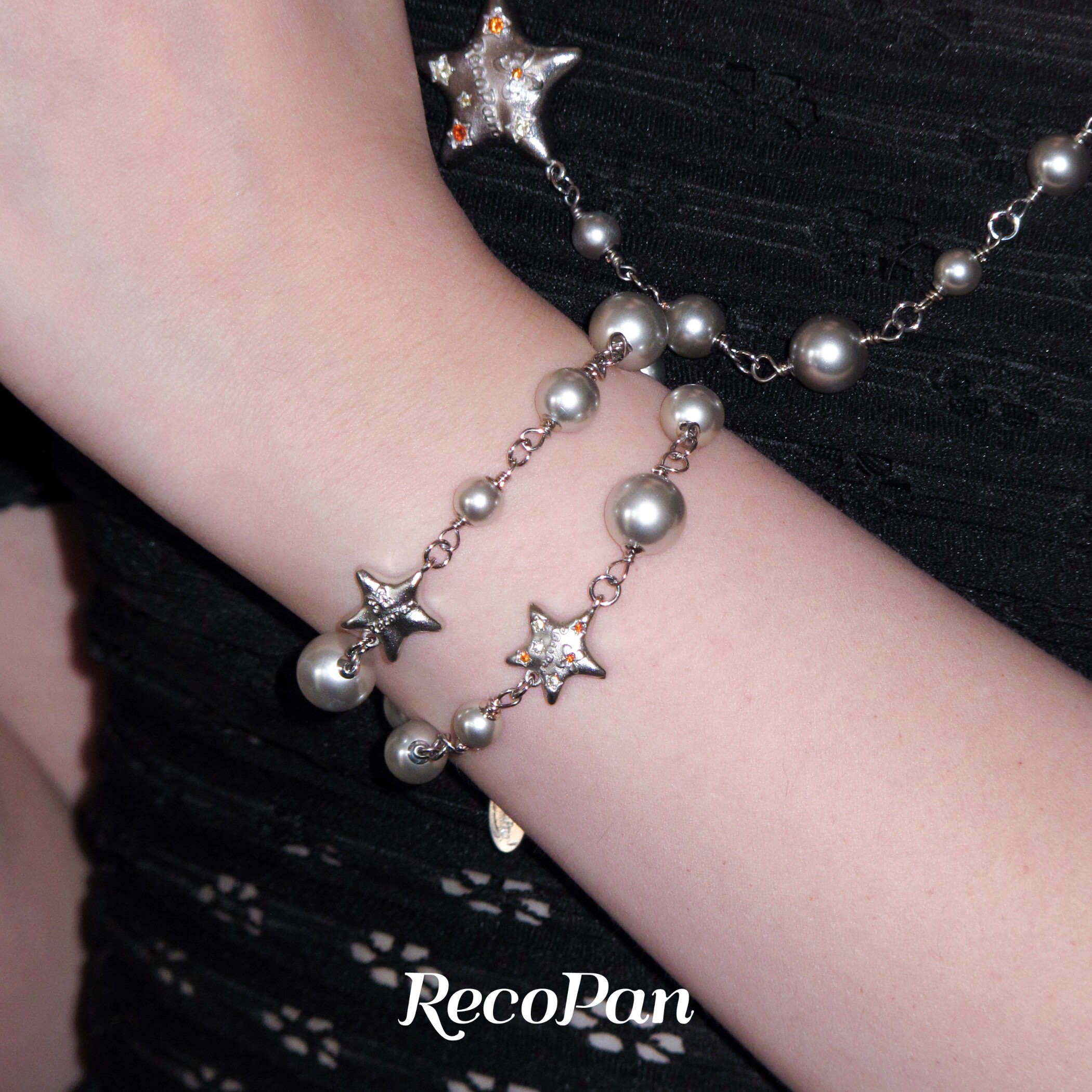RecoPan重塑未来/ 原创做旧哑光个性星星双层叠戴手工灰珍珠手链