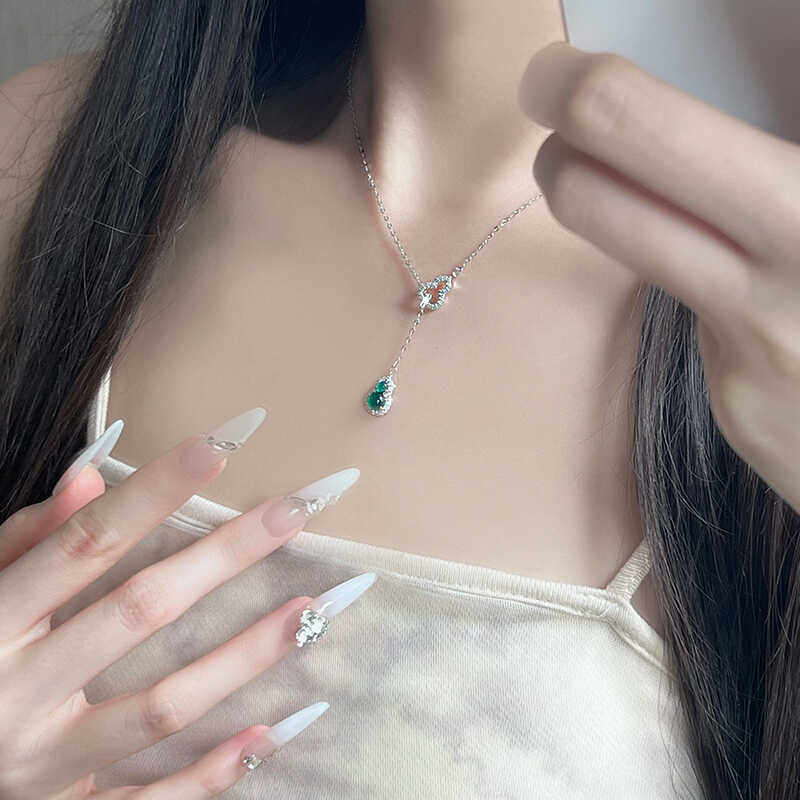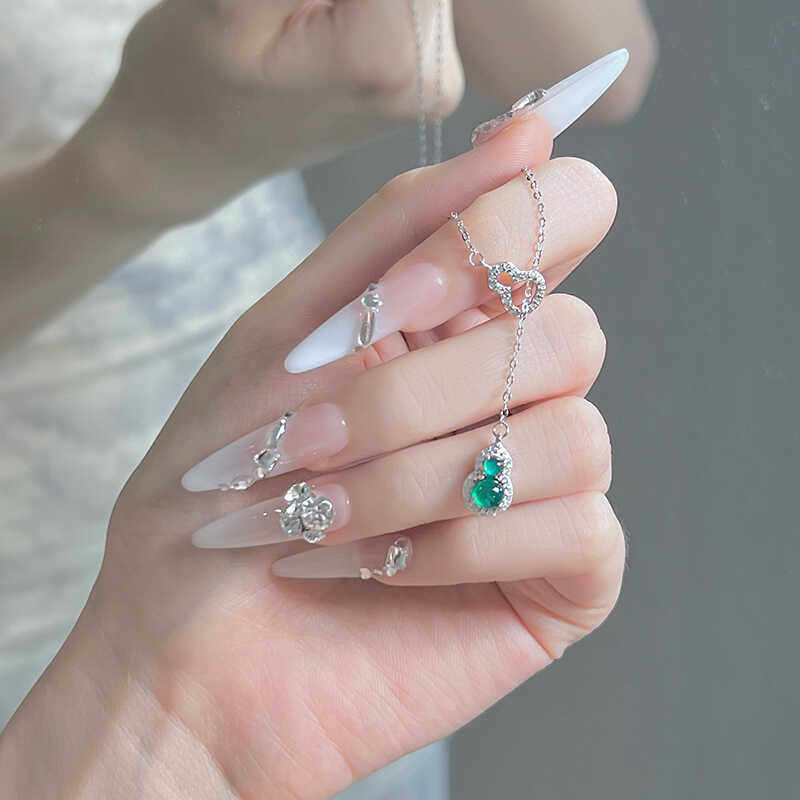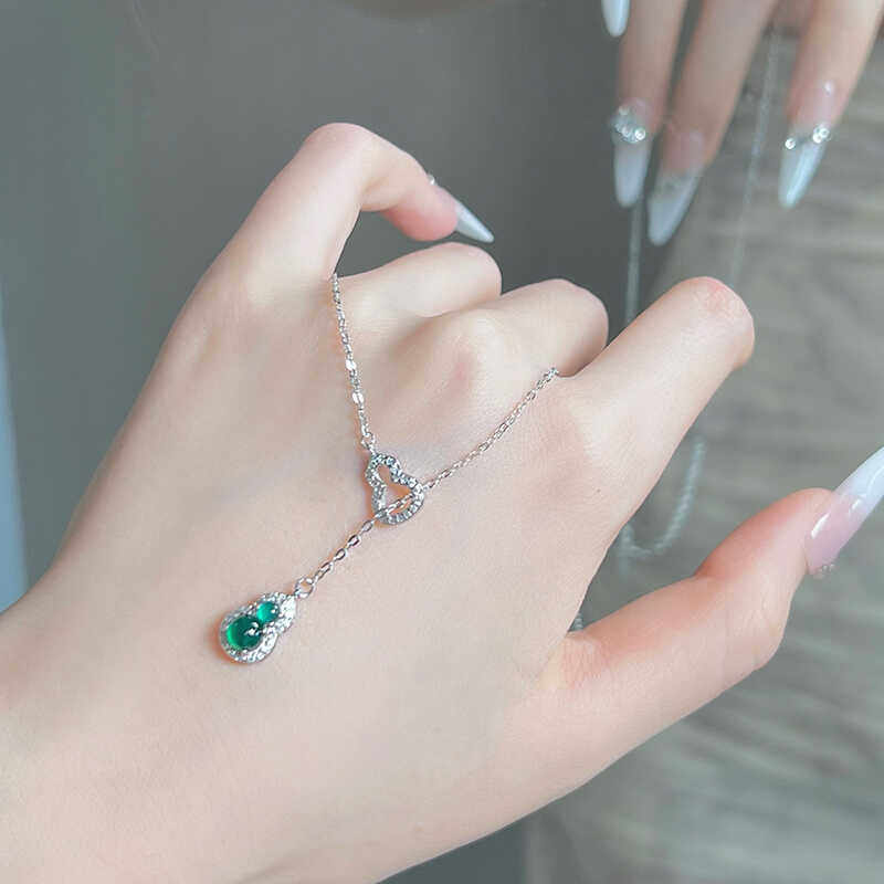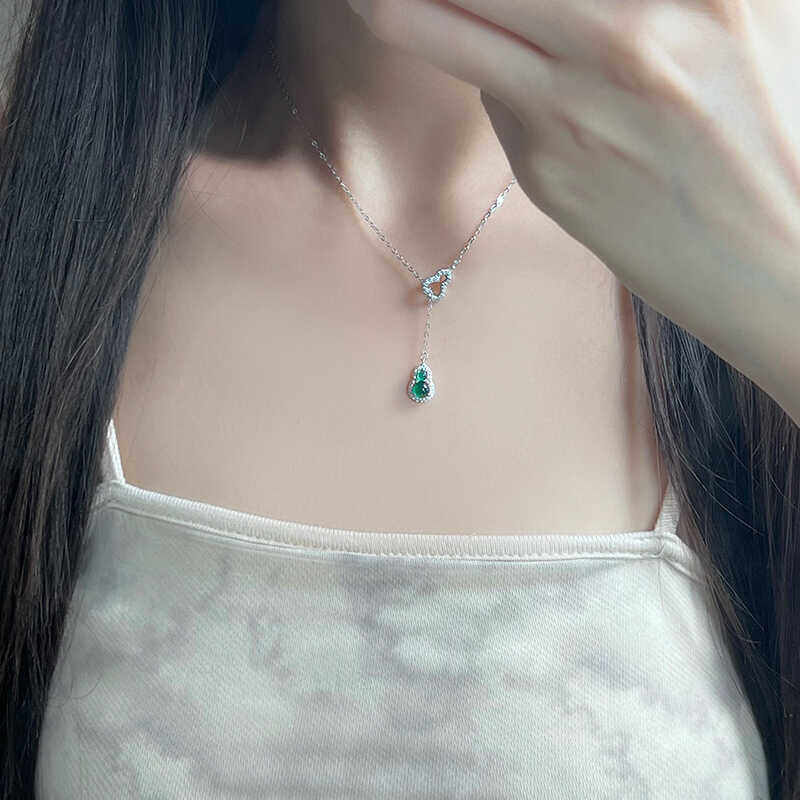 新中式玉髓葫芦型吊坠项链女S925纯银翡翠小众气质国风锁骨链绿色