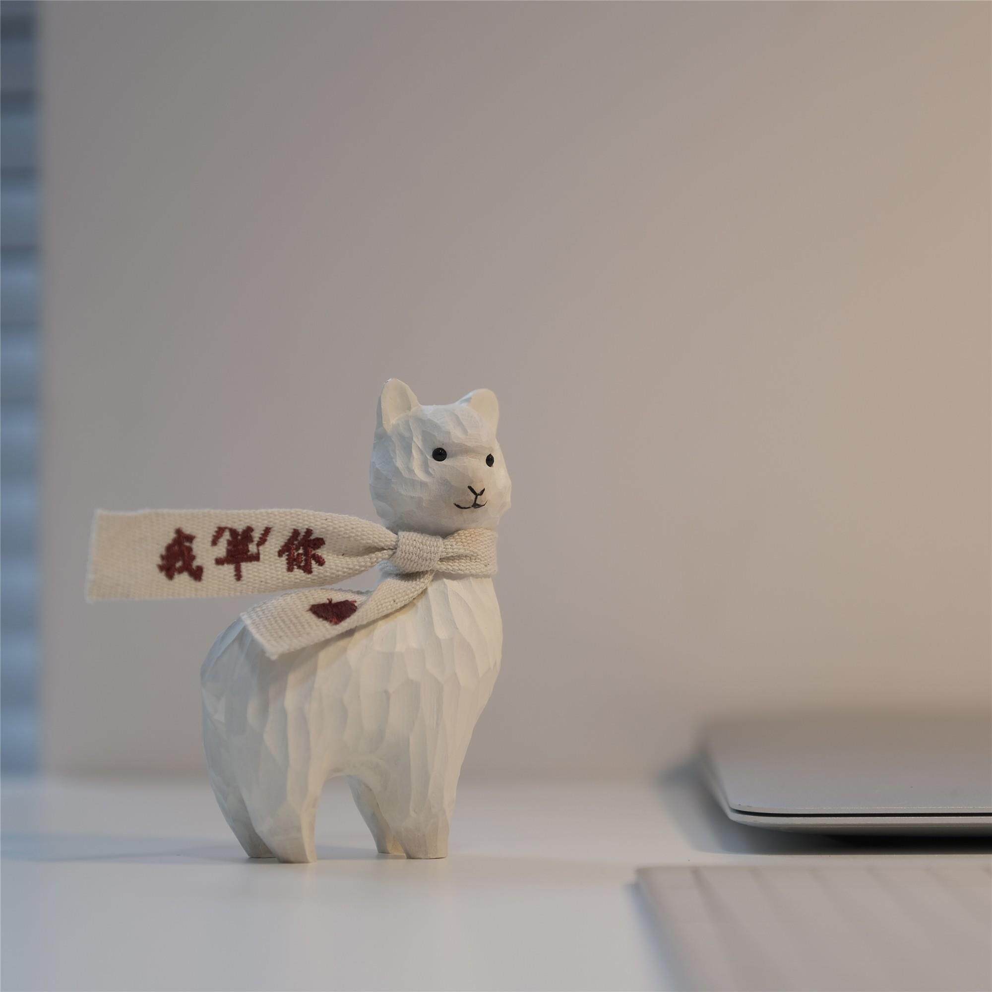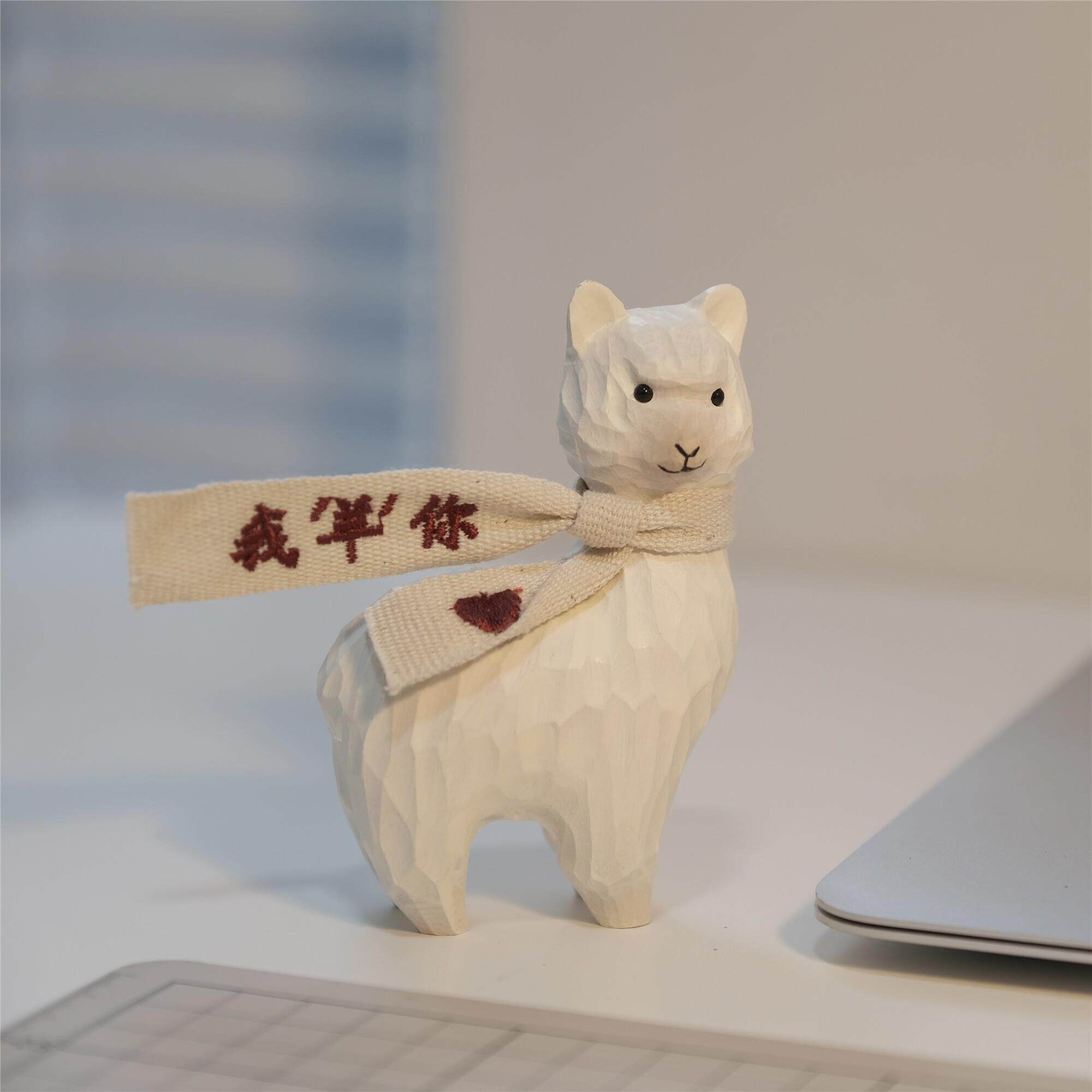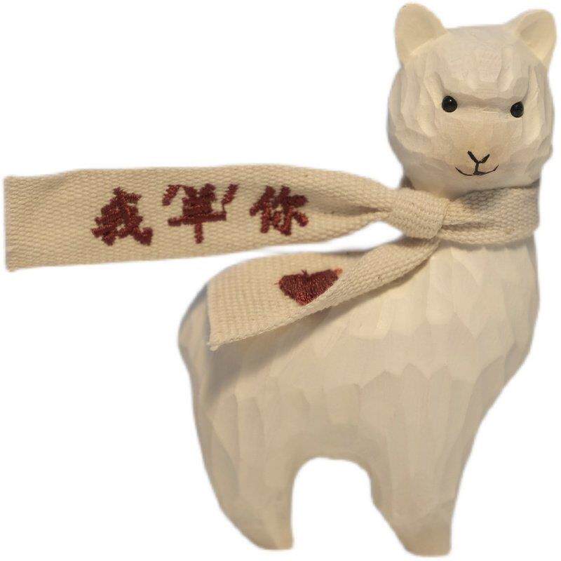 不土/我羊你 羊驼木雕办公桌面车载摆件情侣手工生日礼物新年摆件
