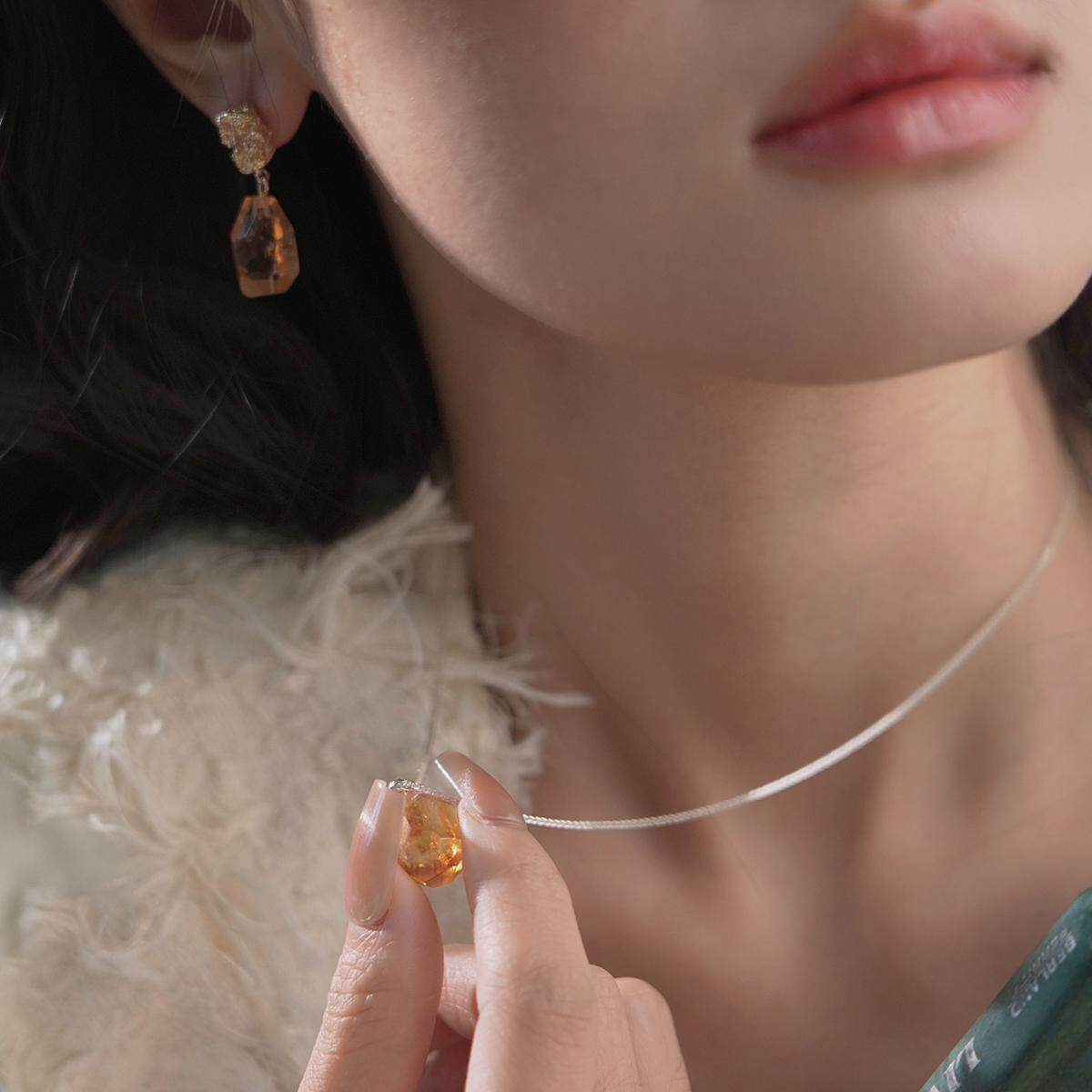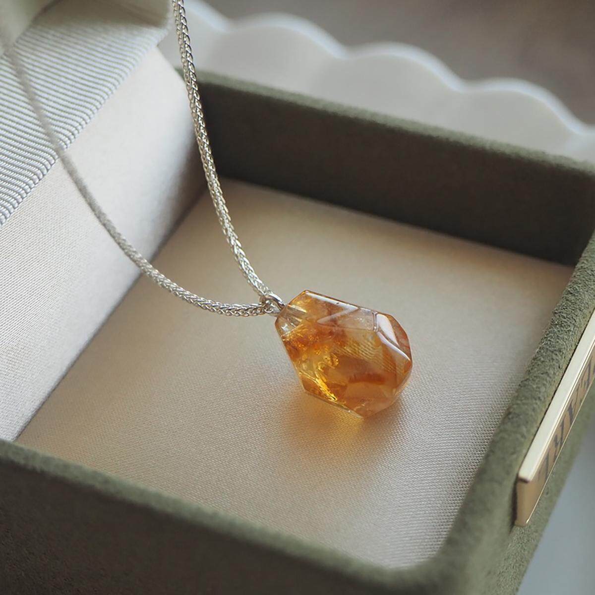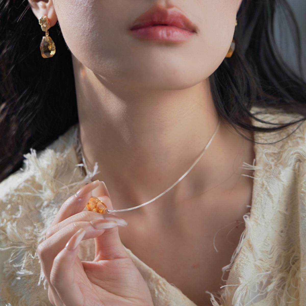 十一月生辰石能量石天然黄水晶黄塔晶不规则925纯银项链锁骨链