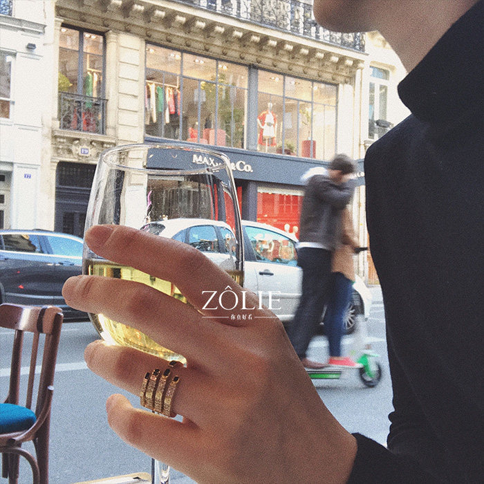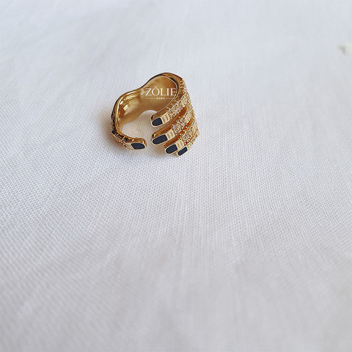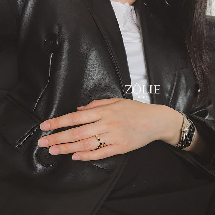 Zolie 原创设计 娘Man平衡 酷美风 微镶 黑色指甲油 保色镀金戒指