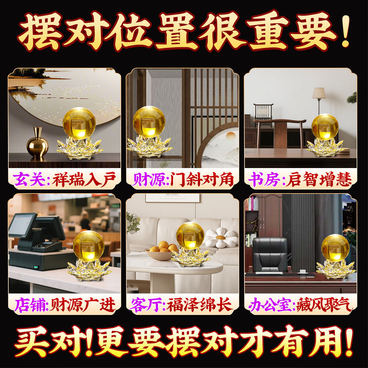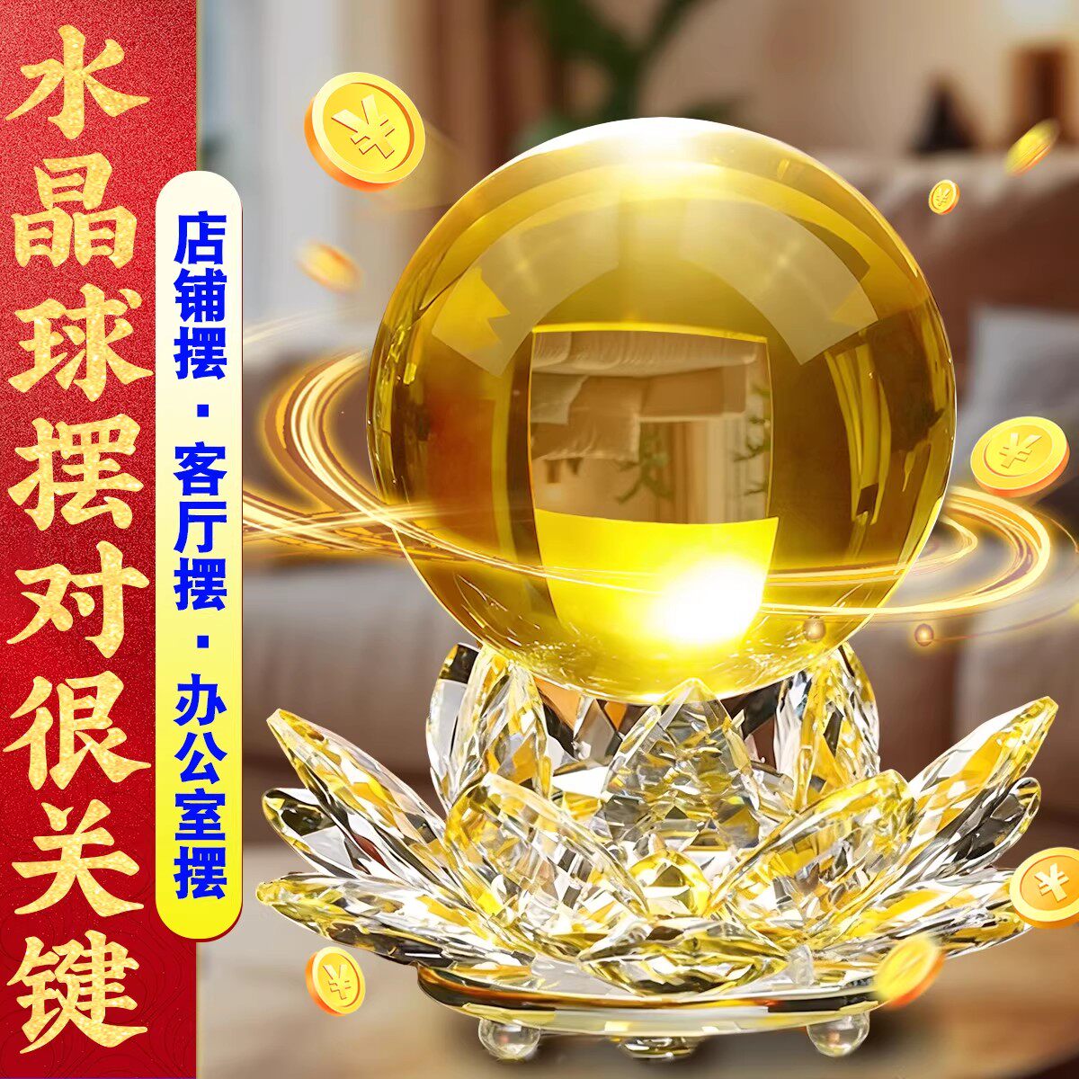 泰山直发黄色水晶球摆件财源广进客厅办公室招财装饰品乔迁开业礼