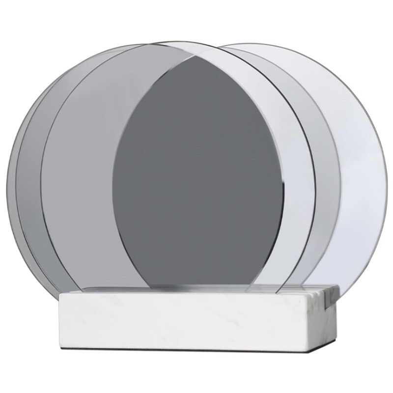 欧式现代装饰摆件灰色玻s璃屏风大理石底座客厅桌面玄关软装装饰
