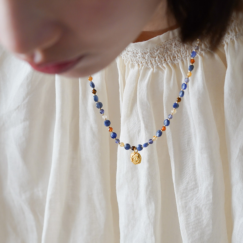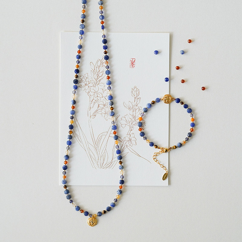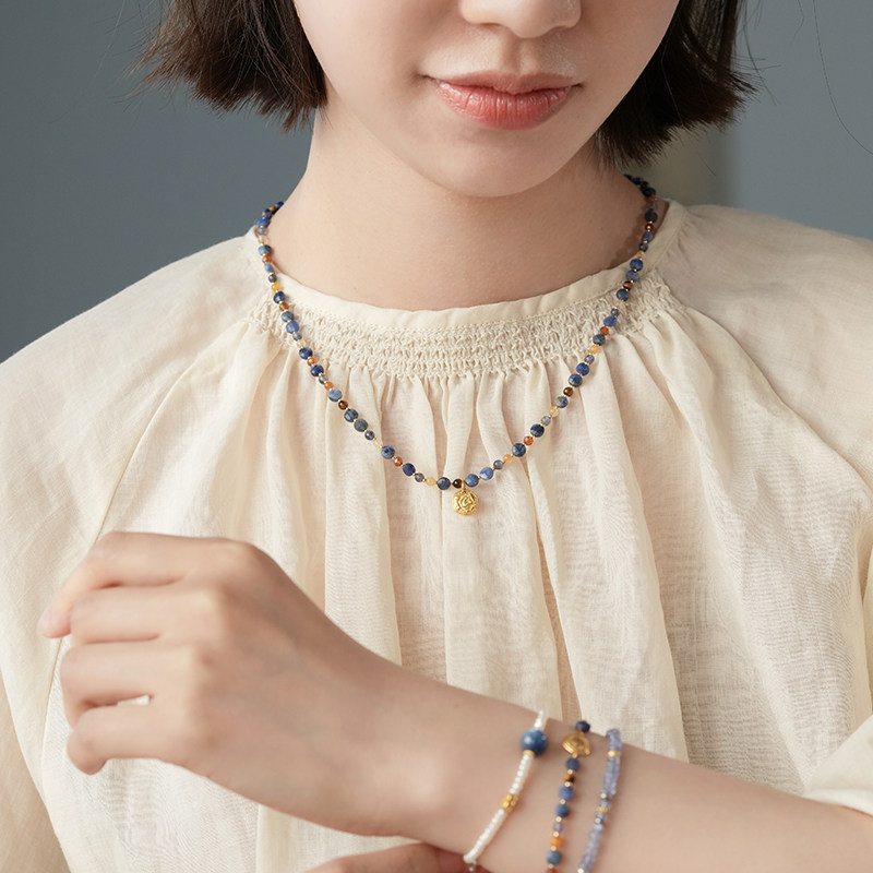 shannai「叙兰时」新中式天然石蓝纹石多宝蓝色系串珠项链锁骨链
