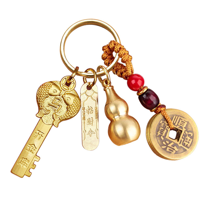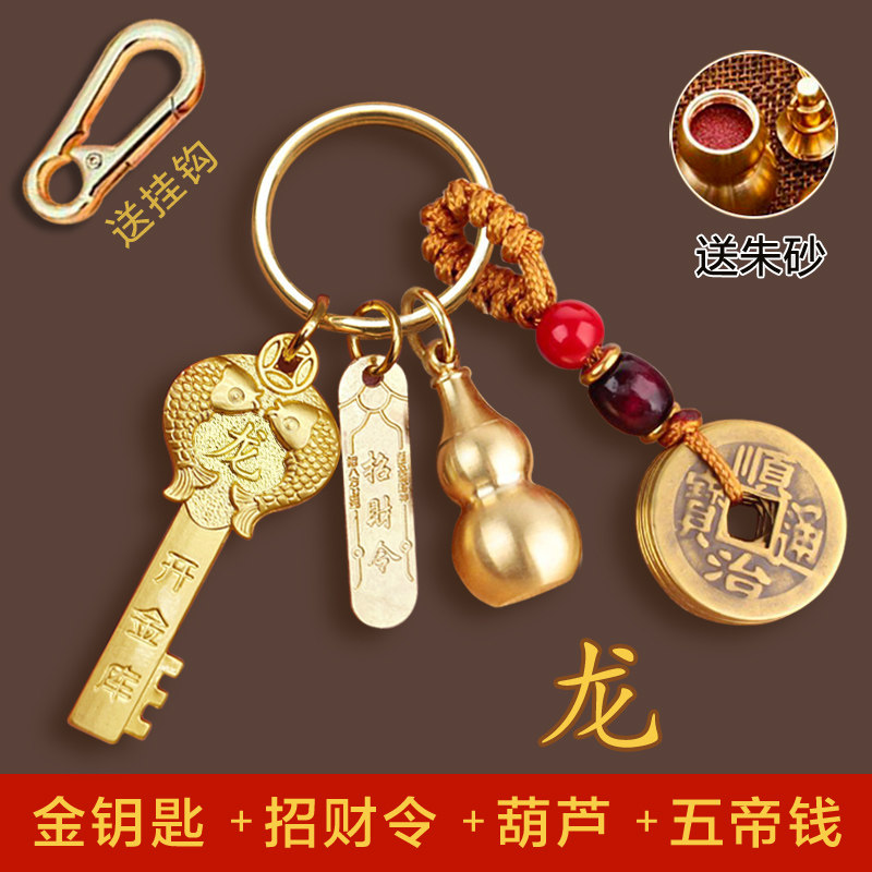 纯黄铜开财库金钥匙好运吉祥十二生肖招财挂件葫芦五帝钱编绳吊坠