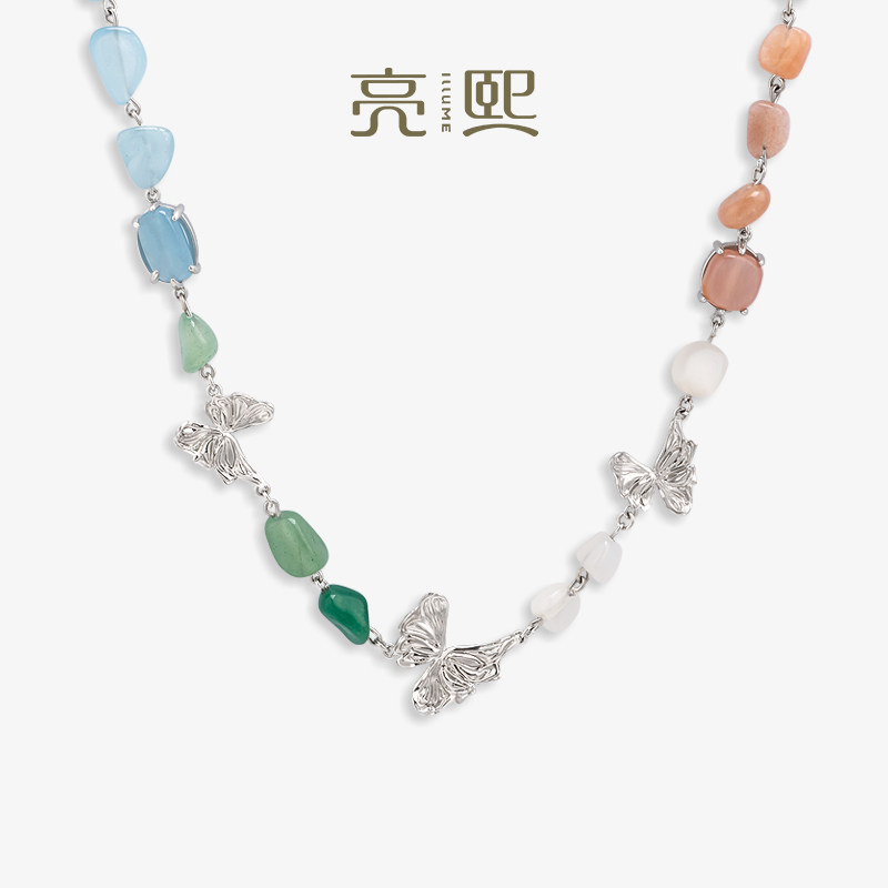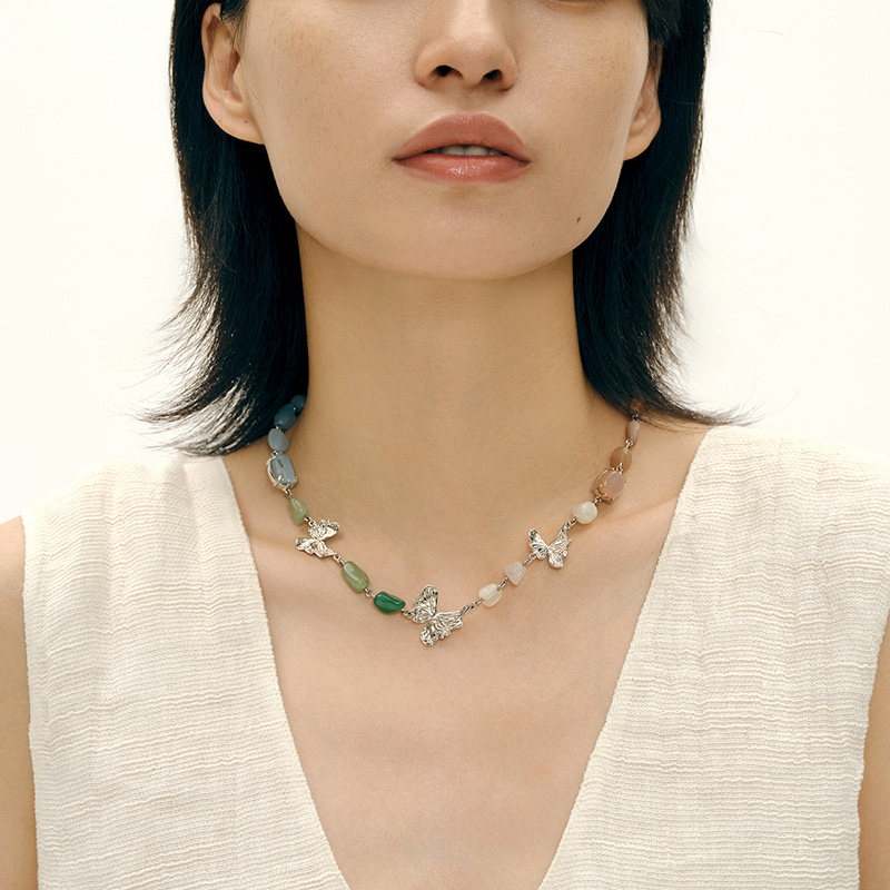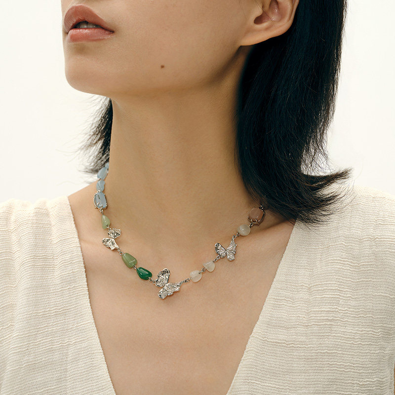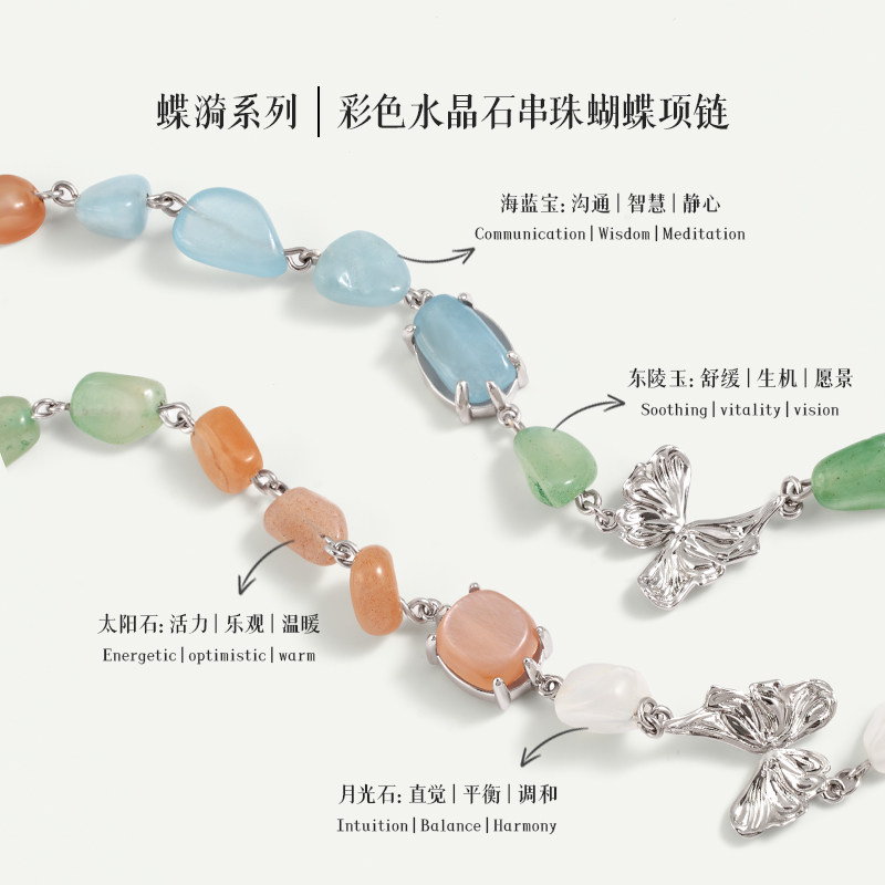 亮熙蝶漪系列彩色天然石串珠蝴蝶项坠轻奢小众多巴胺颈链