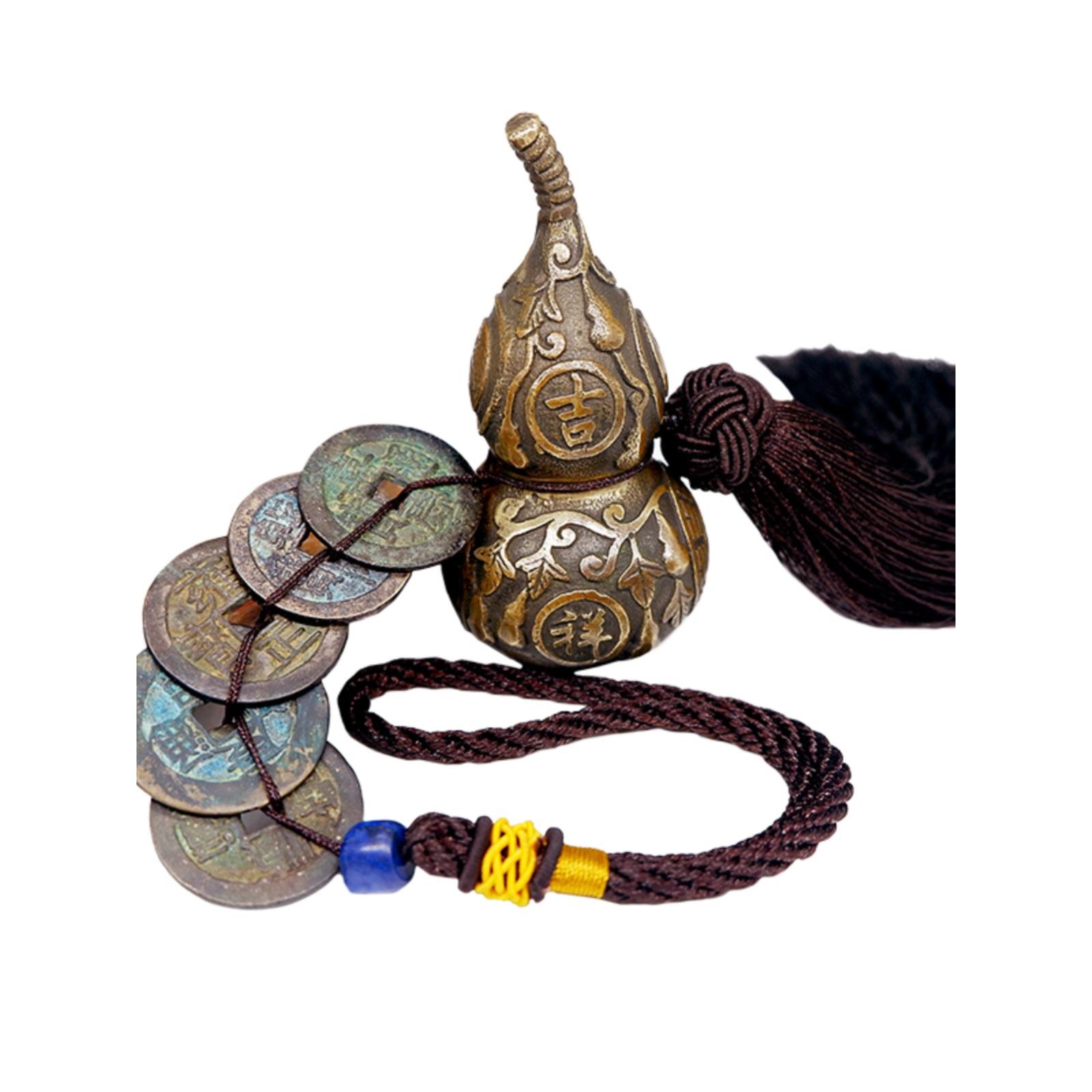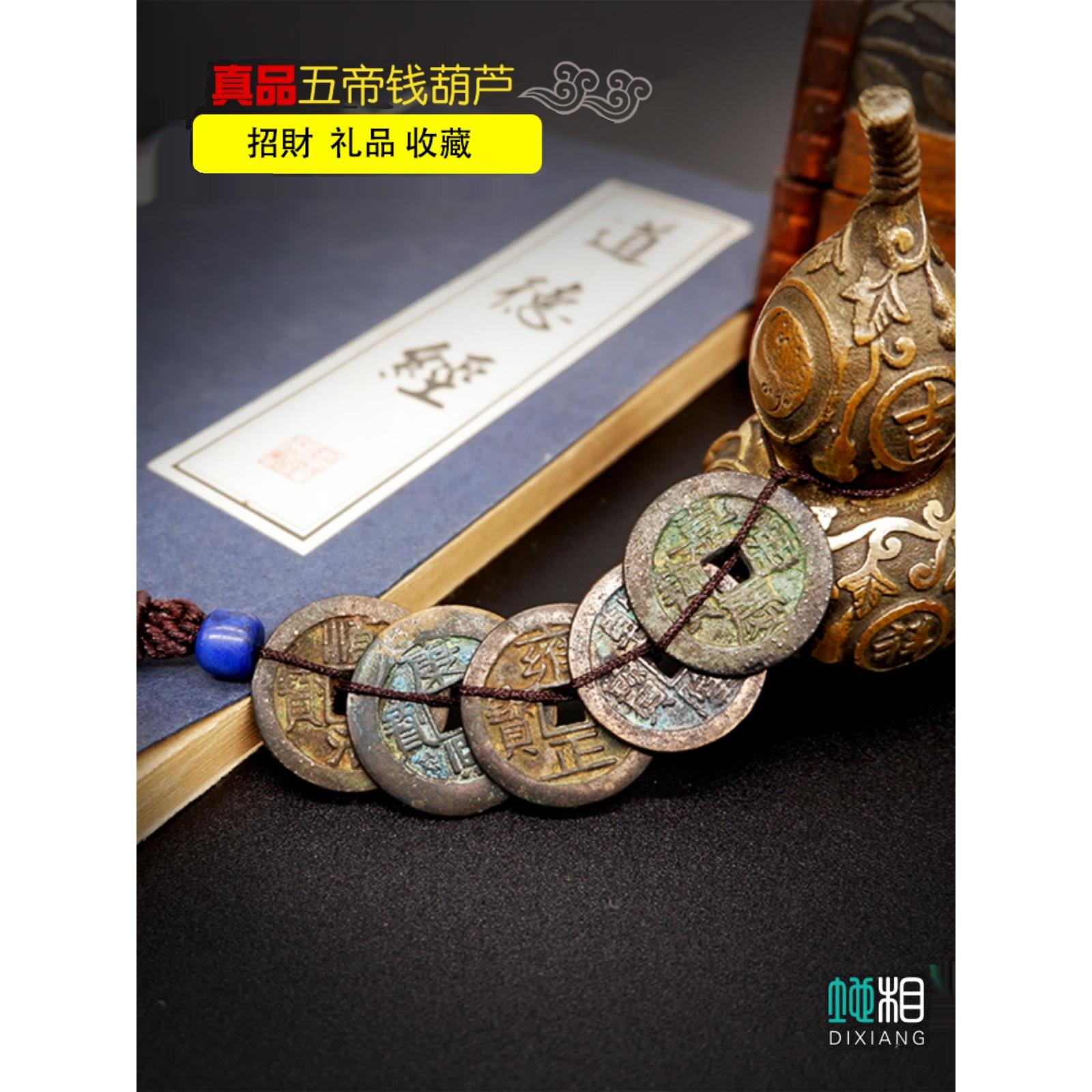 真品纯铜五帝钱葫芦铜钱镇宅招财保真铜古币老钱随身汽车大门挂件