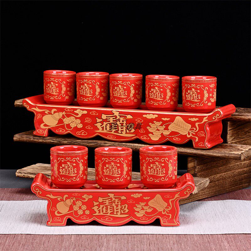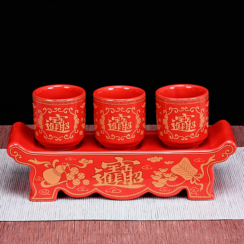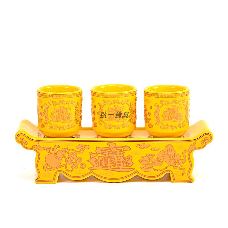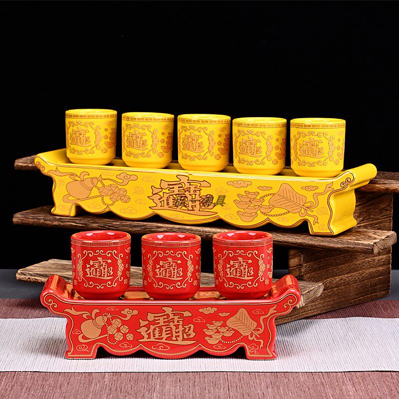 佛堂供酒杯敬酒杯三供杯三连杯财神杯陶瓷家用佛台U净水杯土地祖