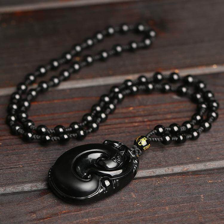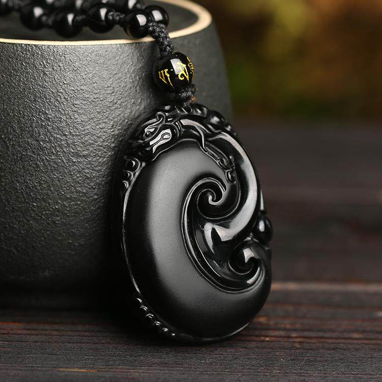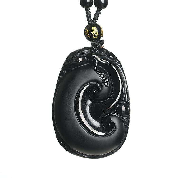 2026诚石珠宝 天然黑曜石如意吊坠项坠男女款水晶饰品厂家
