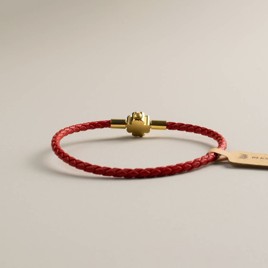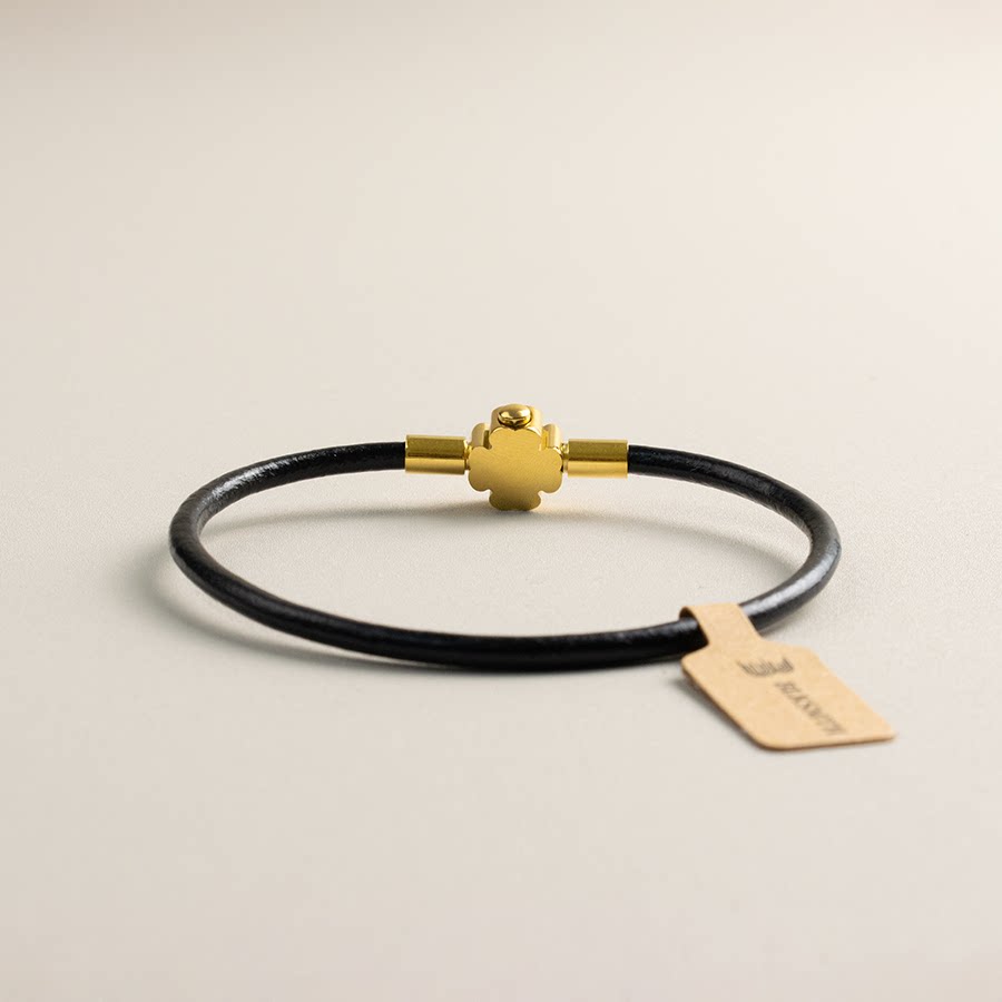 转运男女编织真皮四叶草镀18k金手镯手链简约按扣不掉色手镯手链