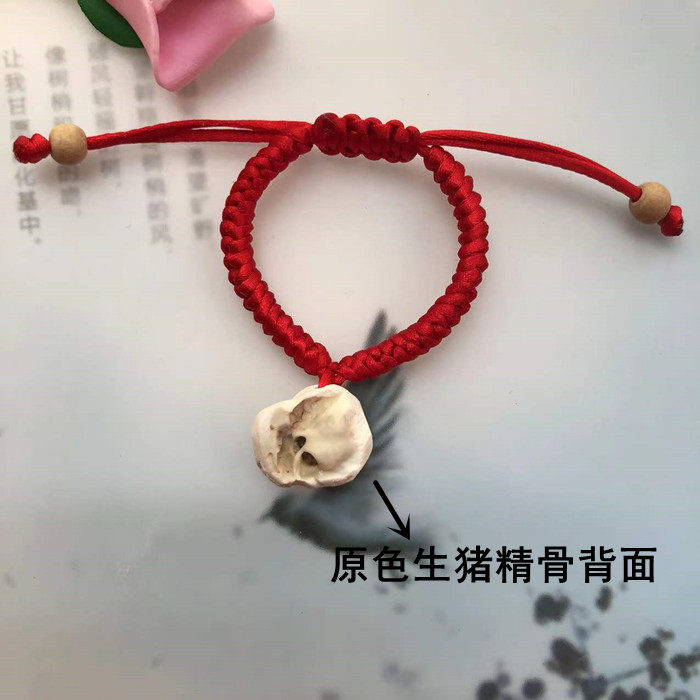 原色生猪精骨桃木珠红绳安睡防吓手脚链宝宝新生儿童成人