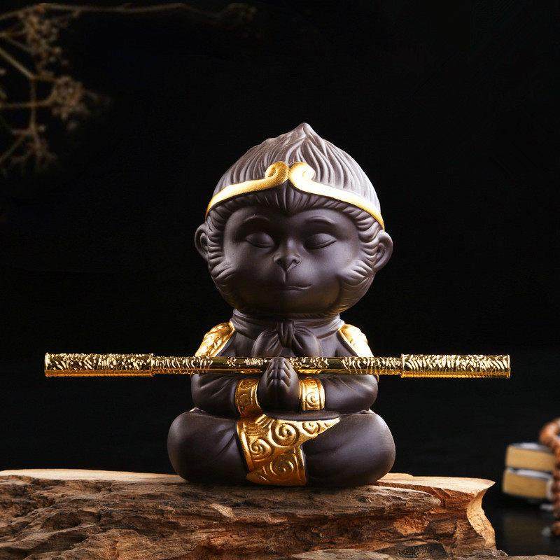 斗战悟空齐天大圣紫砂鱼缸造景摆件茶桌台假山盆景客厅家居装饰品