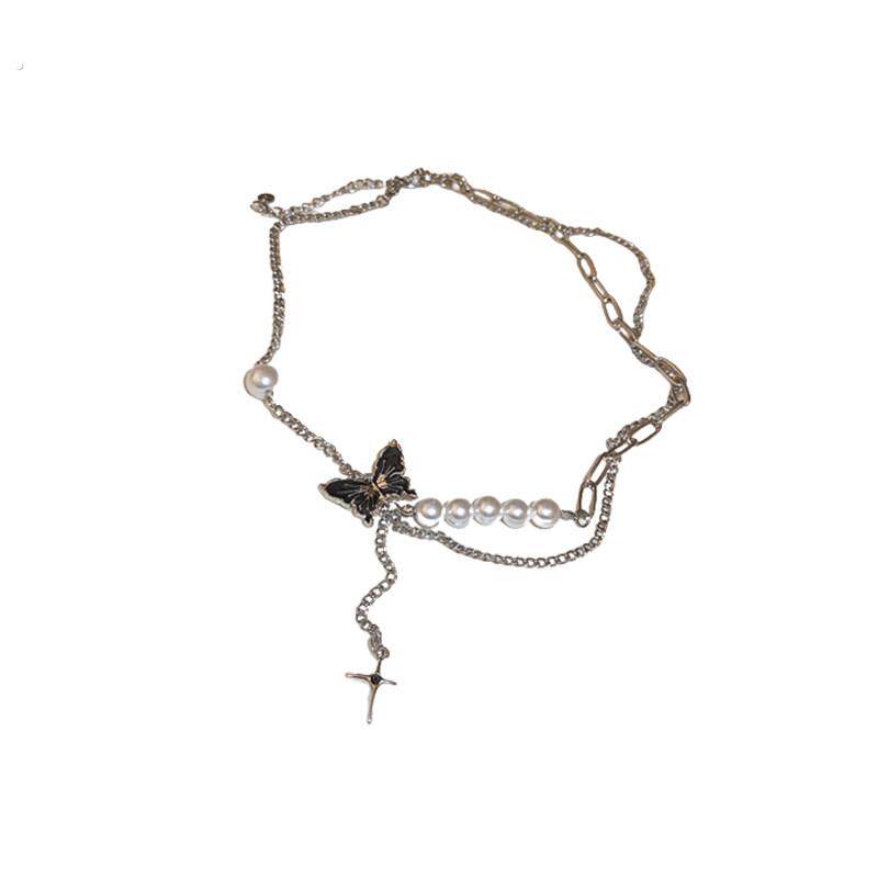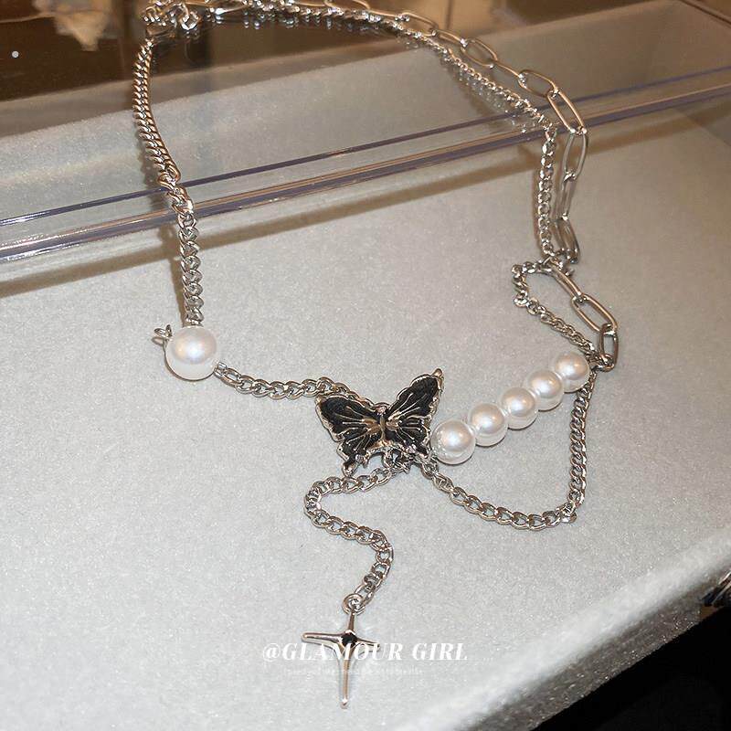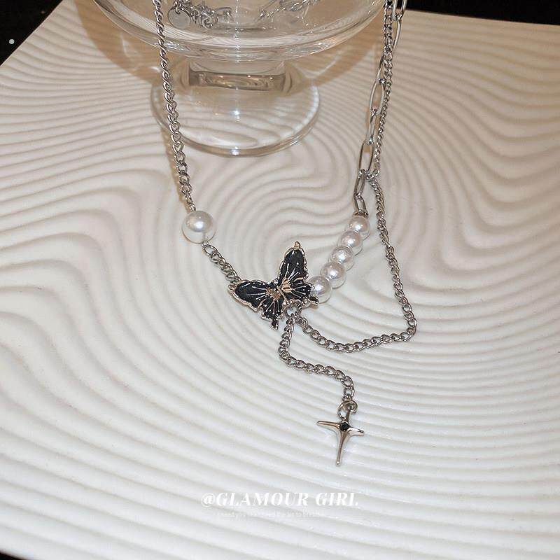 甜酷黑色蝴蝶项链2024新款爆款轻奢小众锁骨链高级感颈链配饰女
