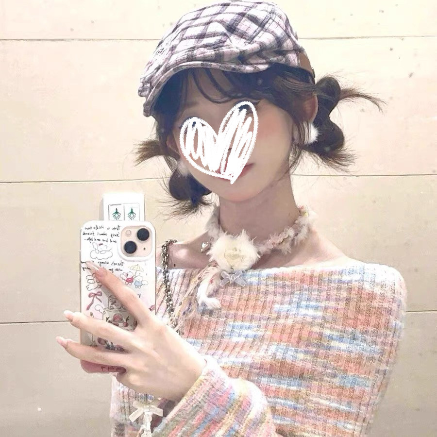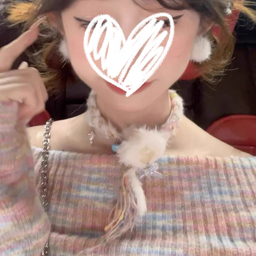 y2k白色毛绒爱心项链毛球小众甜美可爱亚文化彩色毛衣链颈链配饰