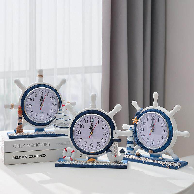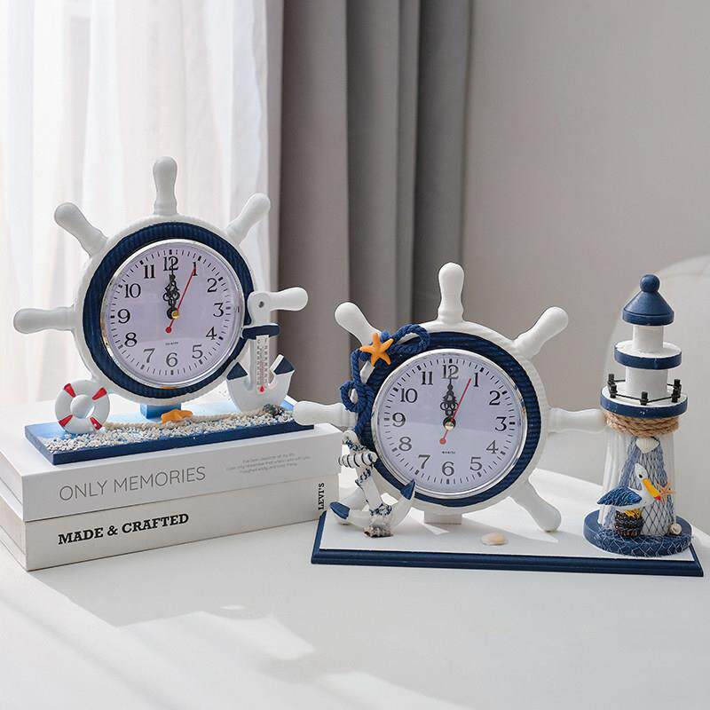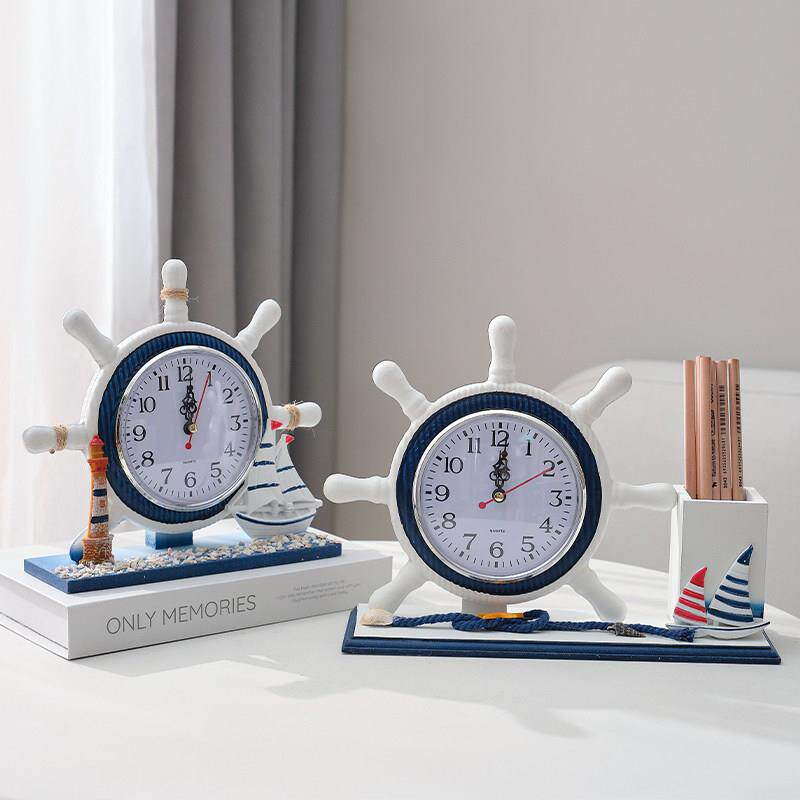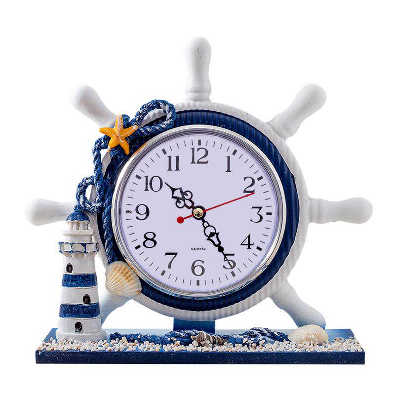 卧室床头装饰座钟客厅实木质钟表摆件地中海航海座钟创意静音时钟