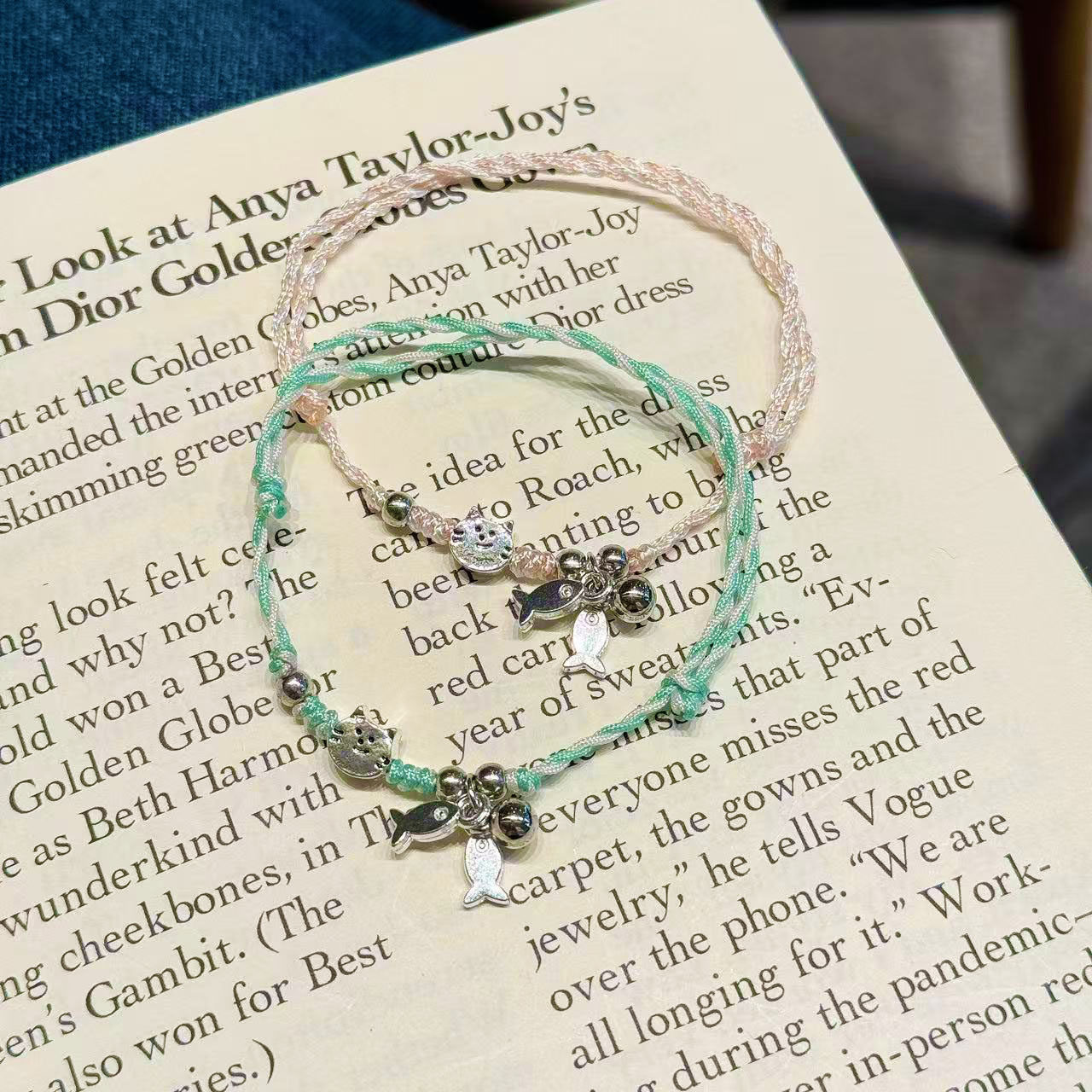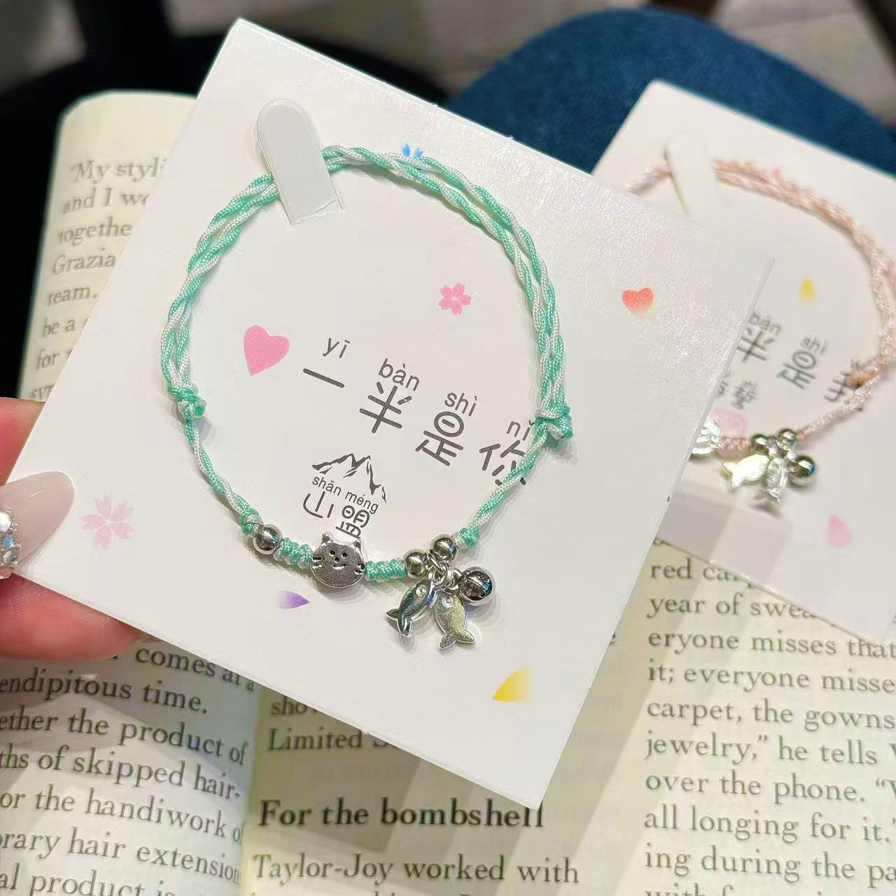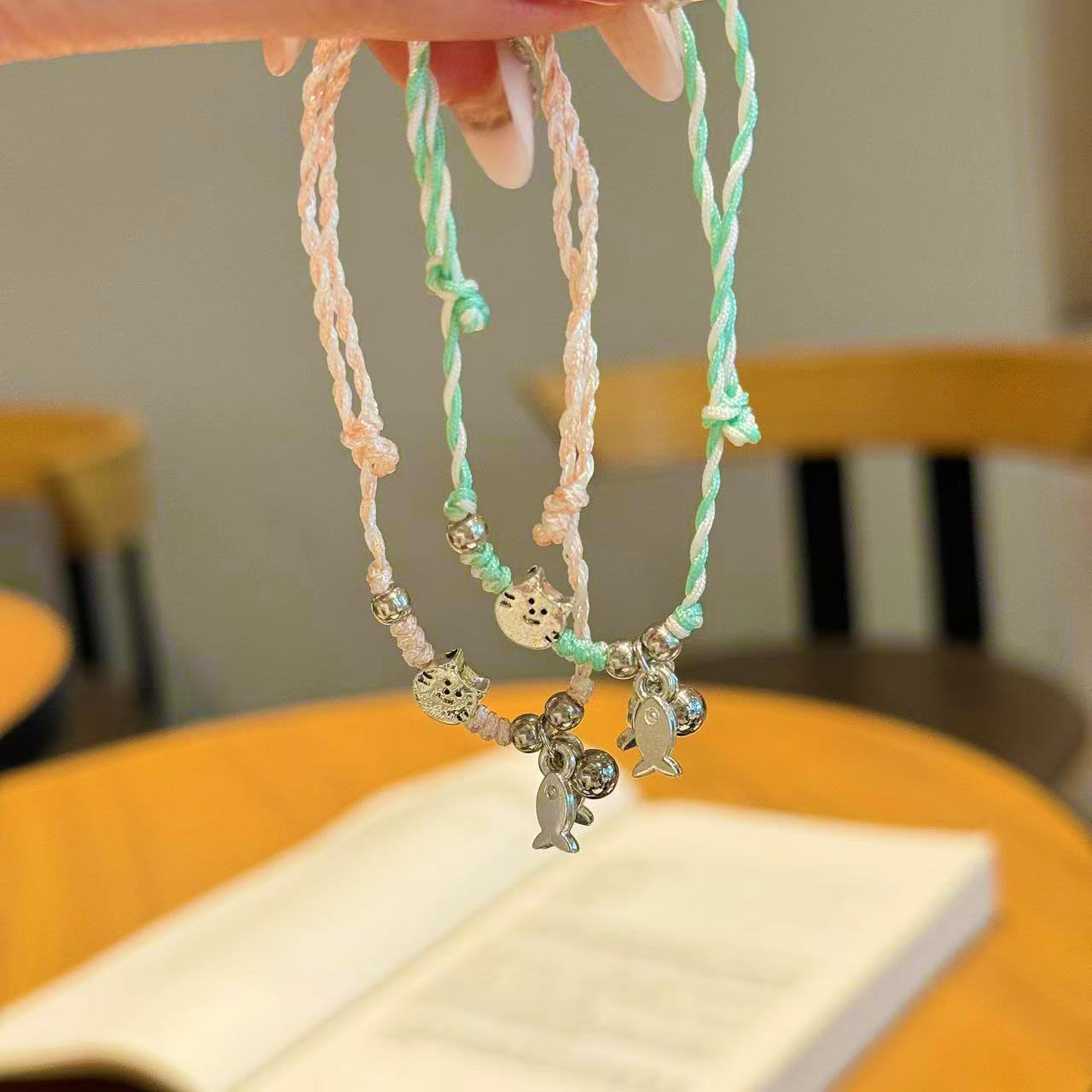 小清新猫吃鱼手工编织手链情侣闺蜜二人手绳五彩绳ins风网红可爱
