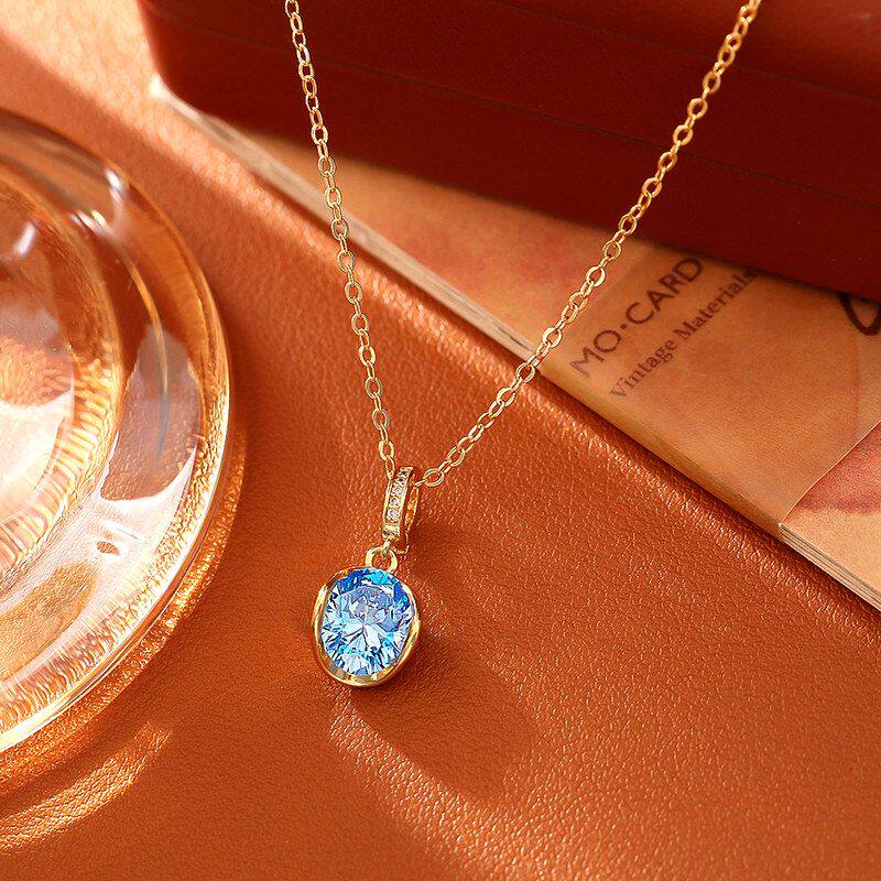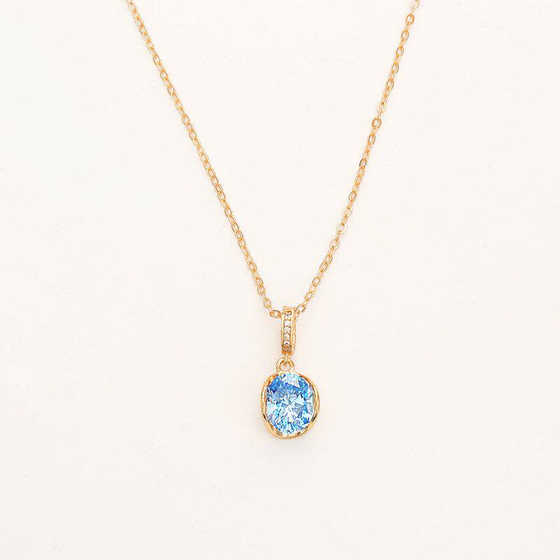 爆款蓝色锆石吊坠项链高级感时尚简约浪漫气质锁骨链清新仙女耳环