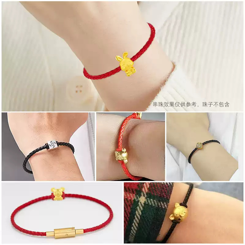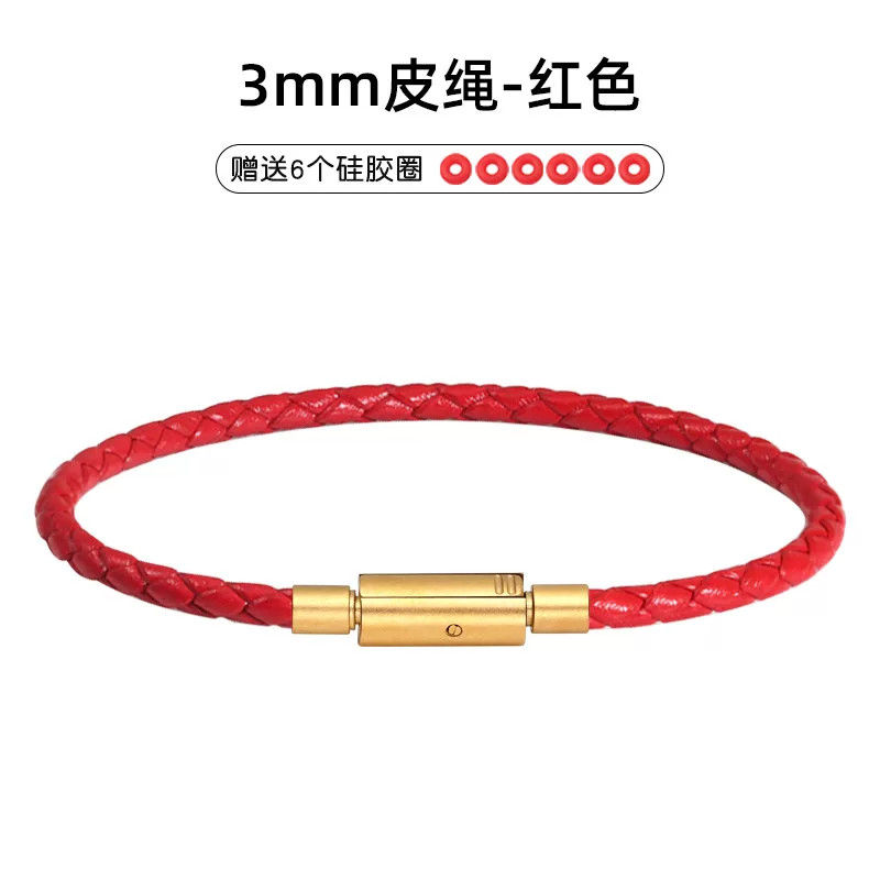 新年红色皮手绳皮绳搭配饕餮黄金转运珠编织手链不锈钢扣男女多款