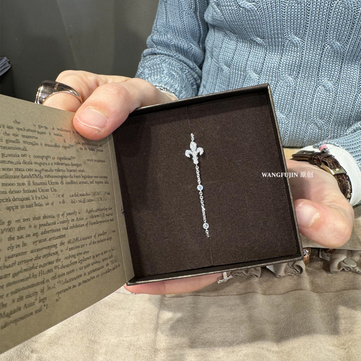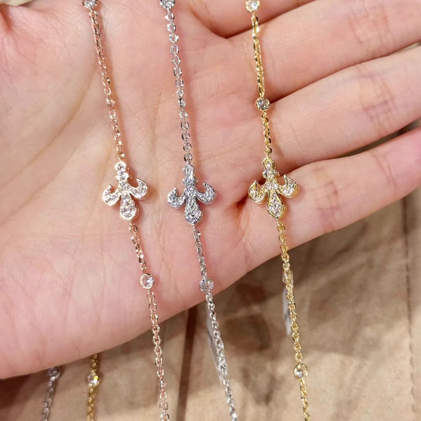 佛罗伦萨18K金鸢尾花满钻手链 女中古纯银十字架高级感情人节礼物