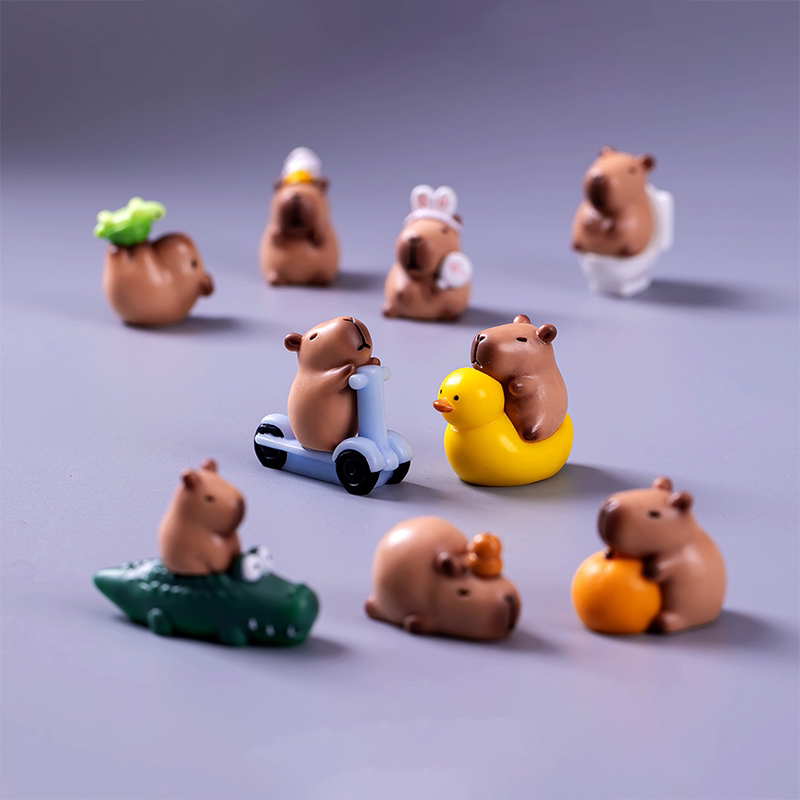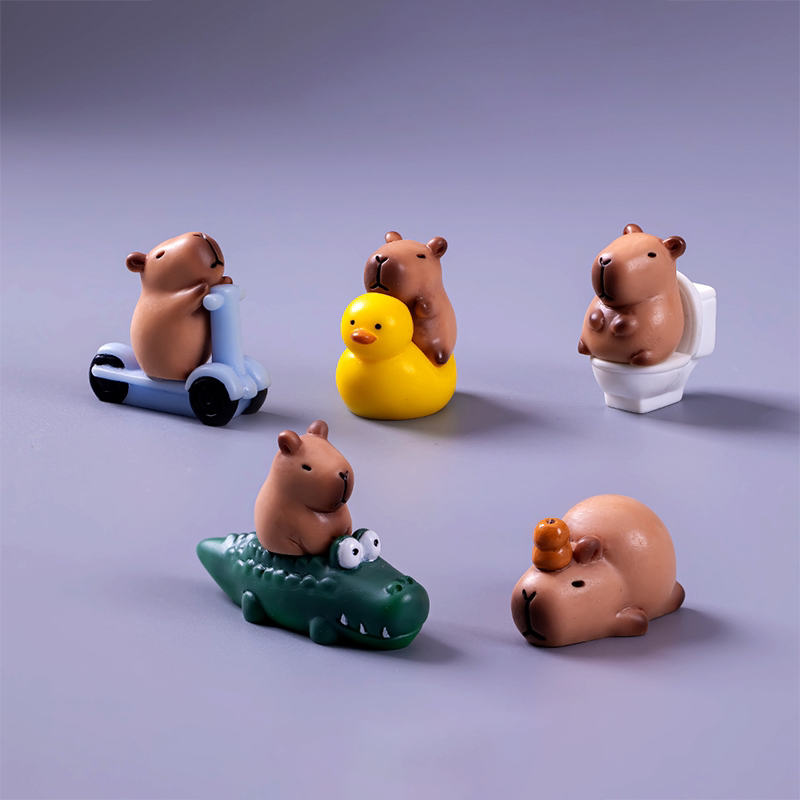 可爱卡皮巴拉水豚蛋糕小摆件情绪稳定桌面装饰迷你立体一套小玩意