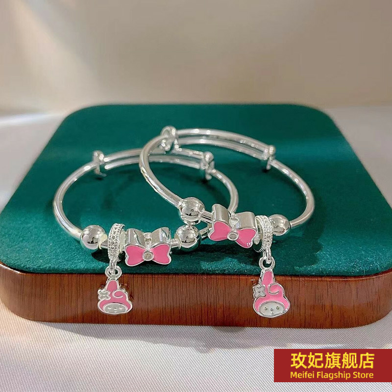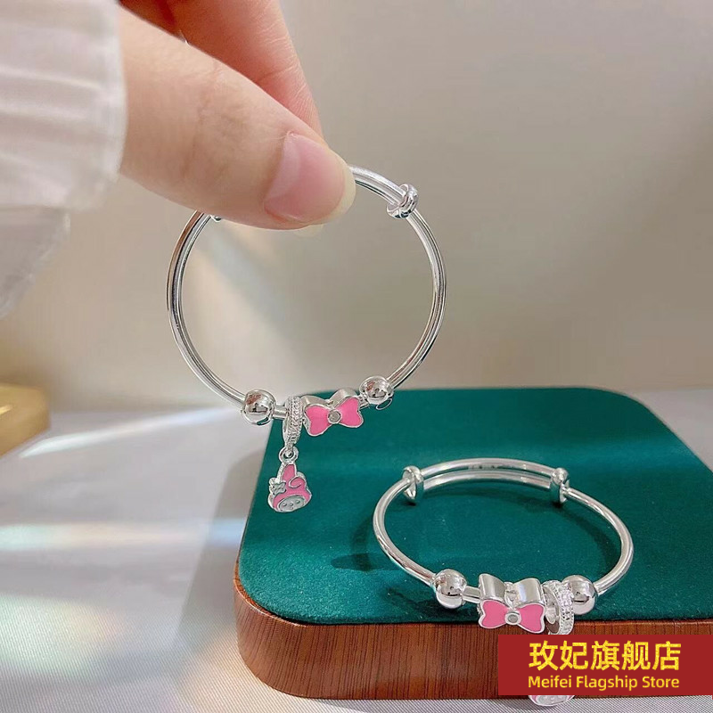 正生纯银纯银可爱蝴蝶结美乐蒂纯银手镯女宝宝小孩子儿童满月周岁