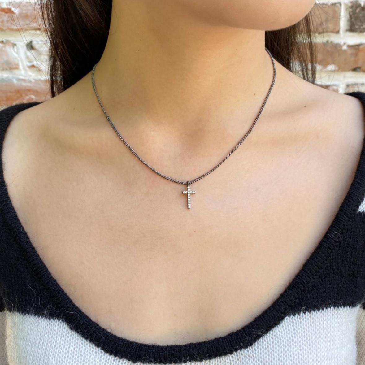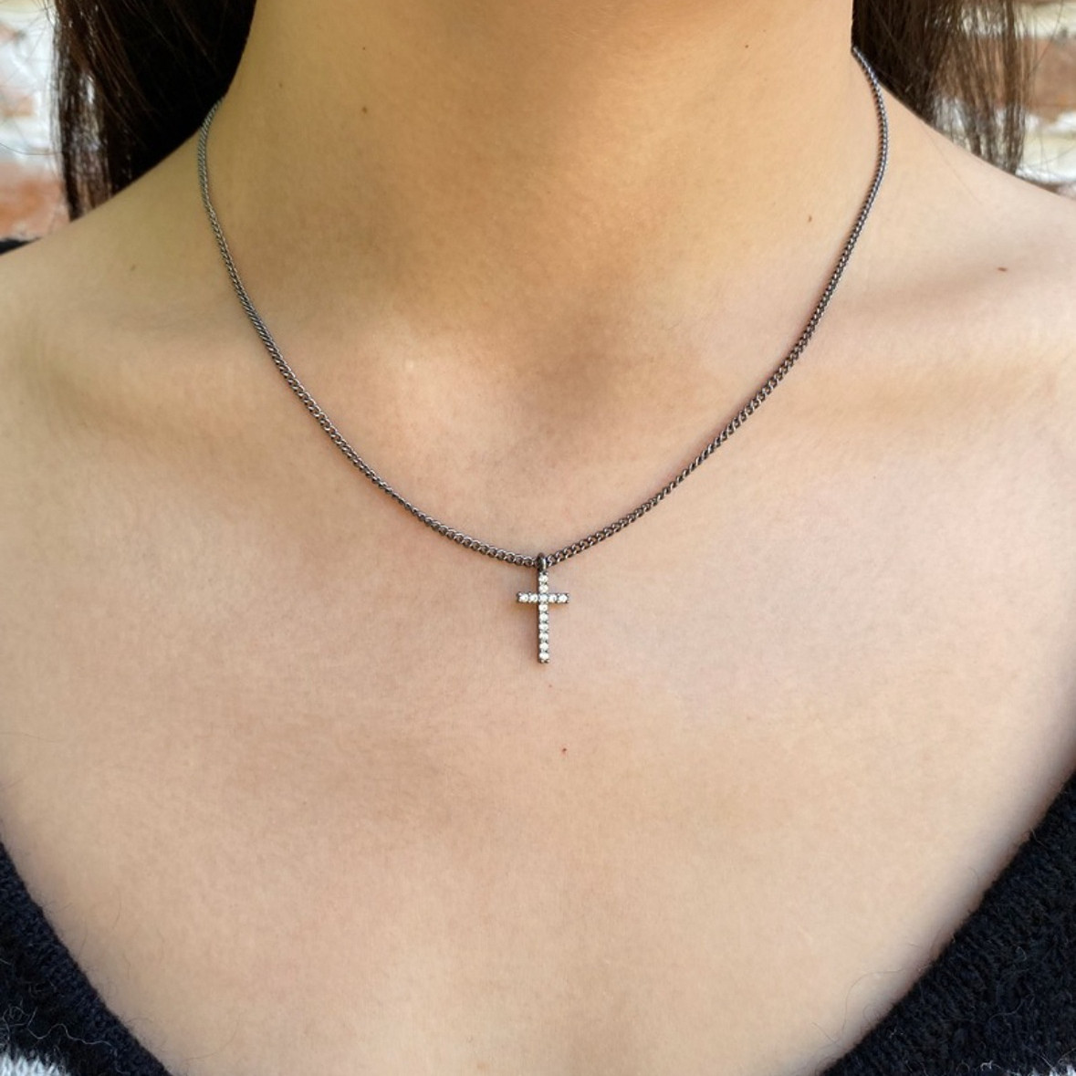 bm项链十字架黑色镶钻吊坠锁骨链女生新款国内代购brandymelville