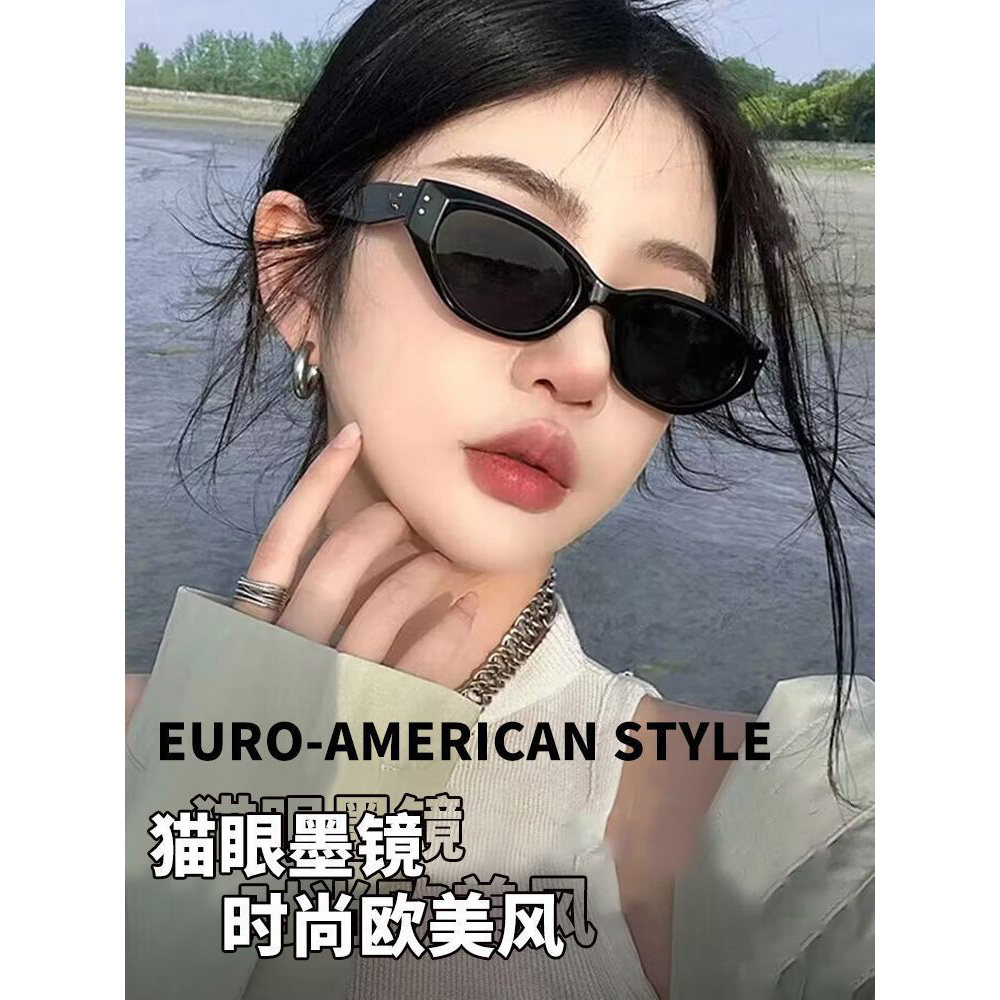 猫眼墨镜女款复古2025新款高级感欧美风美式小脸黑色沙滩太阳眼镜