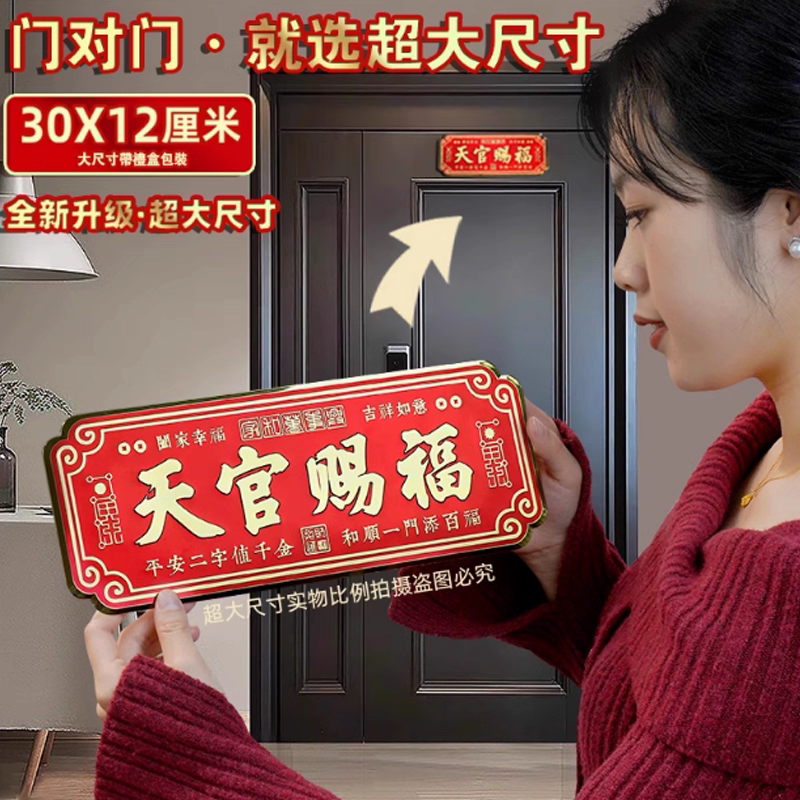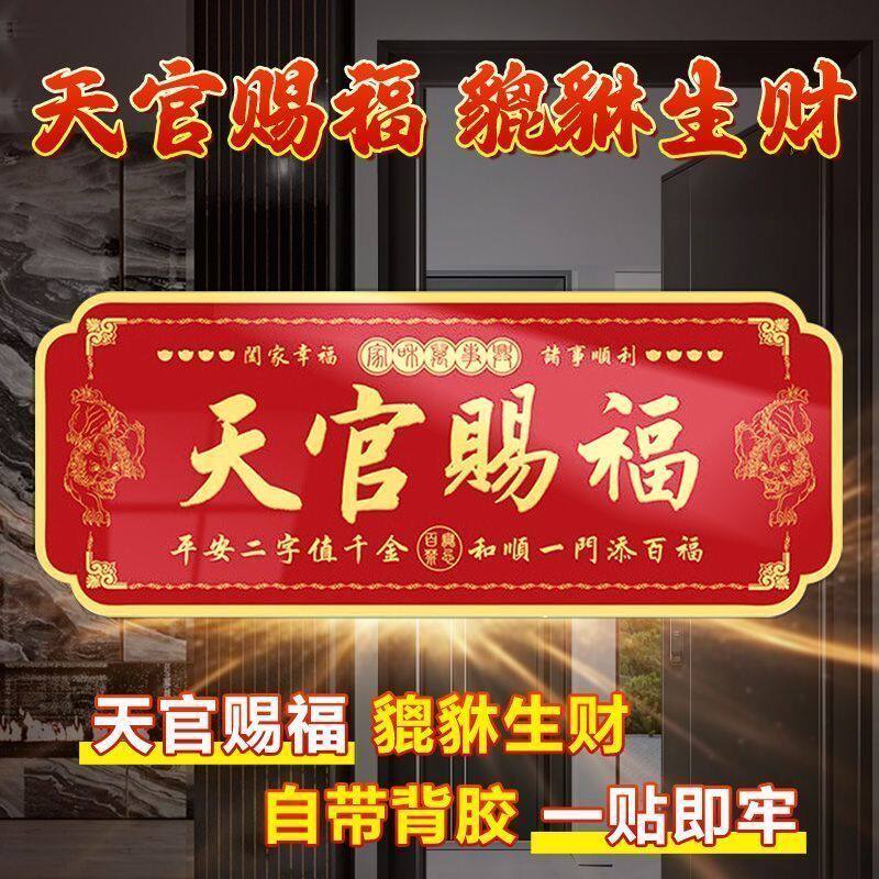 【先生推荐】正品天官赐福麒麟款门贴新年红色喜庆用品入户门镇宅