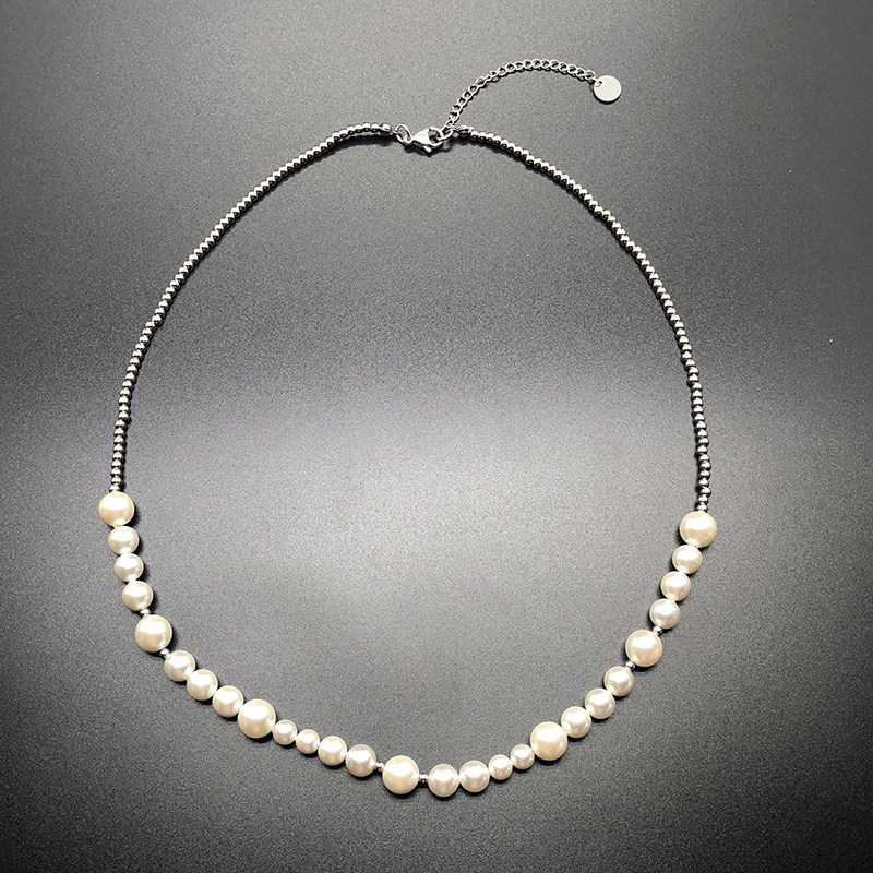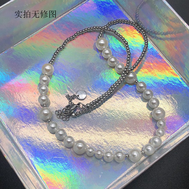 小鬼王琳凯同款国潮珍珠拼接钛钢珠子项链男女个性时尚嘻哈百搭潮