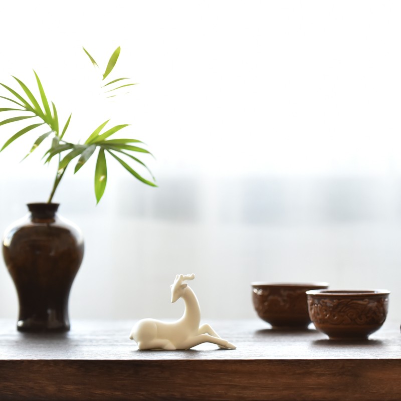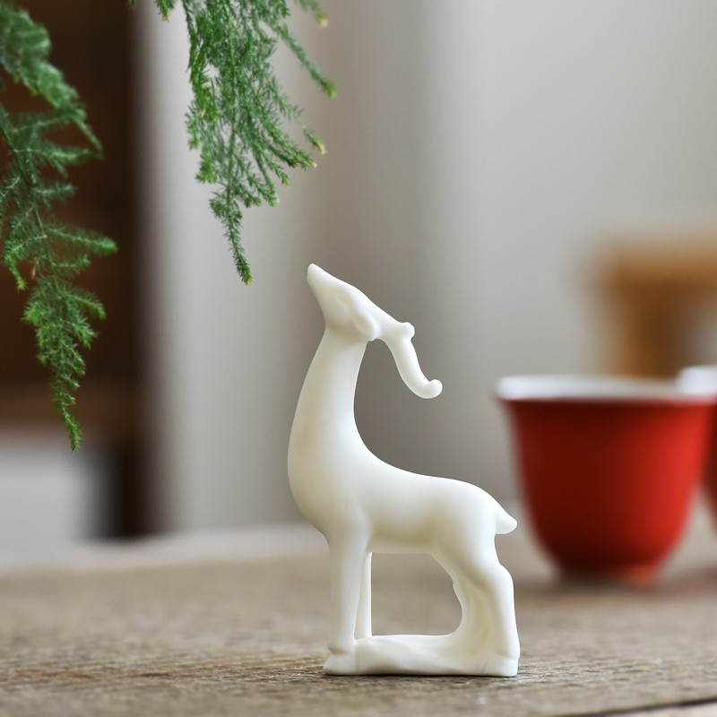 疯猴迷你小鹿陶瓷动物装饰盆景微景观造景茶桌桌面白瓷工艺品摆设
