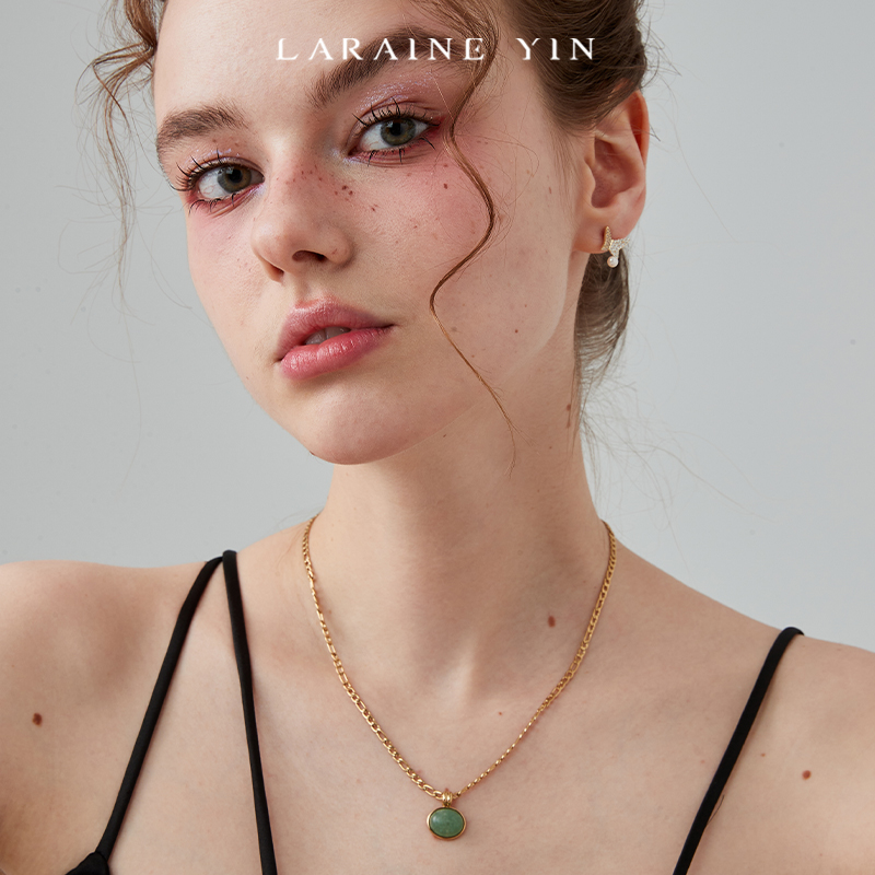 LARAINE YIN新款复古百搭绿色吊坠项链小众法式锁骨链
