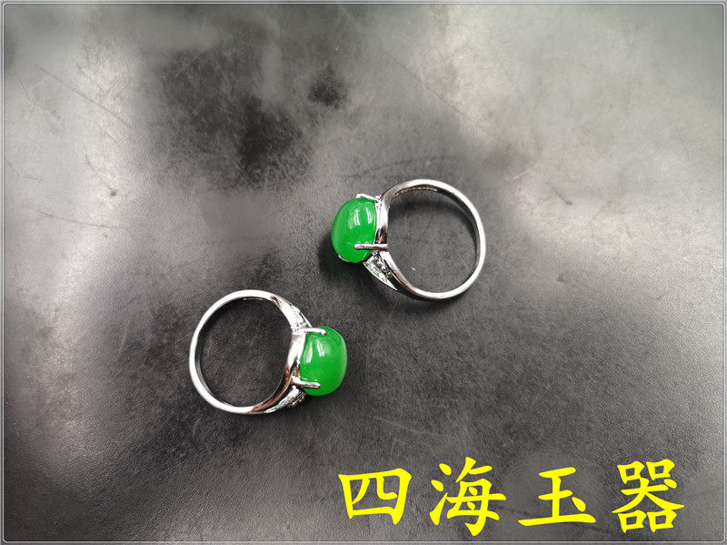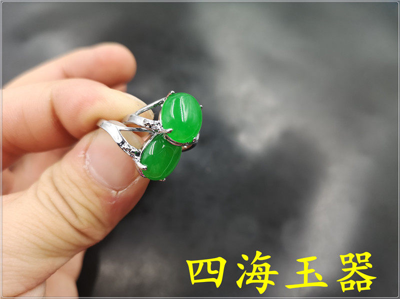 四海玉器 新款冰种翠绿色马来玉戒指 女款女式绿色玉戒指 特价